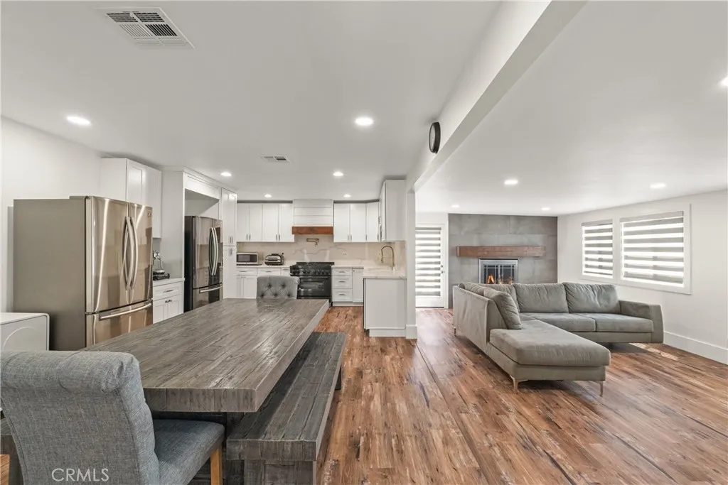 Welcome to 14426 Ermita Avenue—this beautifully updated 5-bedroom, 3-full-bath home in the heart of La Mirada offers modern comfort and thoughtful upgrades throughout. A bright, open layout welcomes you through a stunning custom solid wood door into spacious living and family rooms featuring a cozy fireplace with custom mantle. The dining area flows into a stylish kitchen with quartz countertops, white shaker cabinetry with gold-accent handle, a 6-burner black stainless-steel appliance, and a wall-mounted pot filler adding convenience and a touch of luxury. This home boasts recessed lighting throughout, luxury vinyl plank flooring, dual-pane windows with custom blinds, mirrored closet doors with custom built organizers, quartz countertops in the bathrooms, Jack and Jill bathroom, shower over tub combinations, vaulted ceilings, a generous attic storage, and dedicated laundry area/room with easy access to the backyard. Energy efficient upgrades include fully paid solar providing long-term utility savings! Additionally, premium ductless mini-split systems providing additional heating and cooling for second floor-rooms. Additional highlights include a newer roof with rain gutters and upgraded attic insulation. No HOA dues. With all these added benefits offer freedom and value. Enjoy mature avocado, lemon, and grapefruit trees! Along with a convenient storage shed for tools and essentials. And a versatile upgraded garage with epoxy flooring, lighting, and its own mini-split system that can be an option to use for a workshop/studio, hobbies, and/or gym. Conveniently located near a large regional community park, small neighborhood parks, golf course, tennis center courts, aquatics-recreational center, performing arts theatre, and Biola University. Many local known markets; dining's; shopping centers; and coffee shops. This home blends sophistication, comfort, and location in one of La Mirada's most desirable neighborhoods. Come experience all this home has to offer.