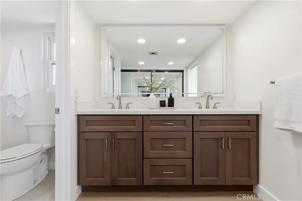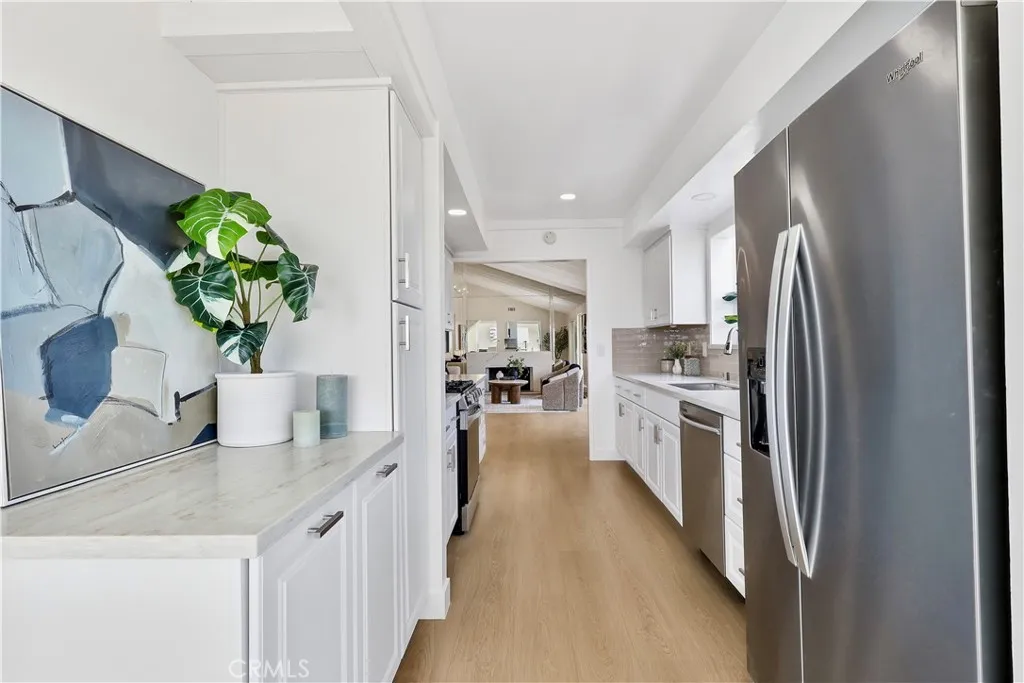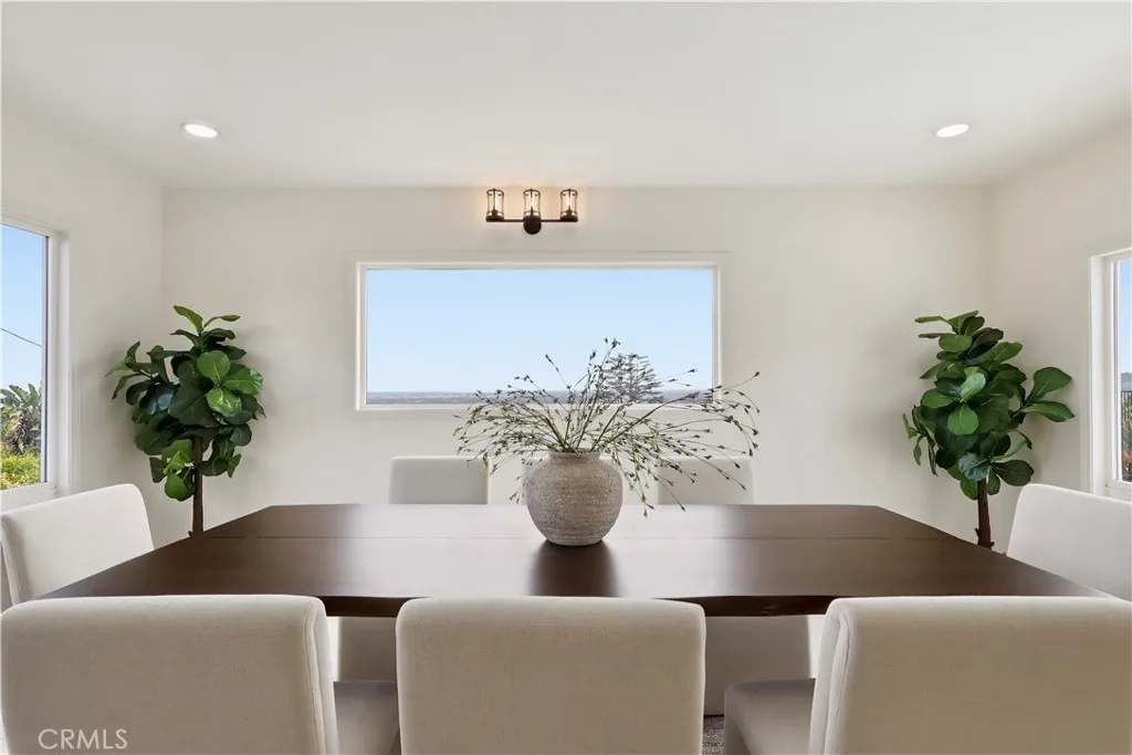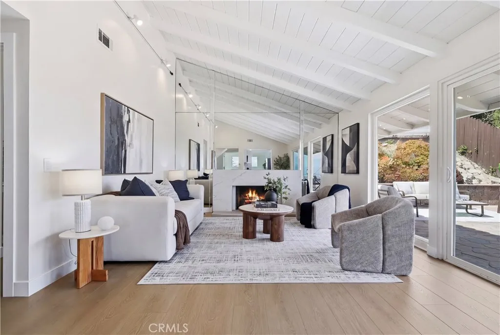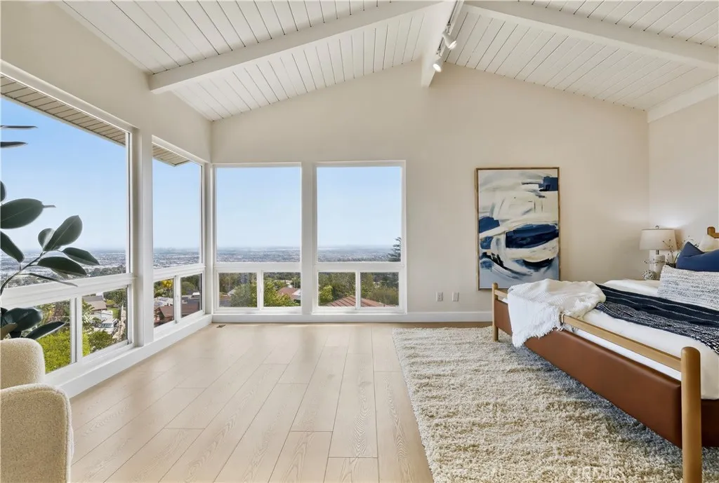 Experience elevated Southern California living in this extensively remodeled 4-bedroom, 3-bathroom residence, offering approximately 2,300 square feet of refined interiors on an expansive nearly 10,000 square foot lot. Showcasing breathtaking, unobstructed views stretching from West Los Angeles to San Clemente—along with snow-capped mountain vistas—this home delivers a rare blend of sophistication, comfort, and scenery. No detail has been overlooked in this comprehensive renovation, featuring fresh interior and exterior paint, new luxury vinyl flooring, recessed lighting throughout, new interior doors, and upgraded baseboards and casings that create a cohesive, modern aesthetic. The main living space is highlighted by soaring vaulted ceilings with exposed beams and a sleek statement fireplace, flowing seamlessly into a fully remodeled chef’s kitchen with quartz countertops, custom cabinetry, and stainless steel appliances—perfectly designed for both everyday living and elevated entertaining. The upper-level primary suite serves as a private retreat, offering sweeping unobstructed panoramic views, capturing stunning sunsets and city lights. All three bathrooms have been thoughtfully remodeled with a spa-inspired design, featuring custom vanities, quartz surfaces, designer fixtures, and a beautifully appointed glass-enclosed walk-in shower with elegant tile. Step outside to a true resort-style backyard, enhanced by extensive architectural landscaping and a remodeled pool featuring new LED lighting, along with new pool features. Multiple lounging areas provide the perfect setting for entertaining or relaxing in total privacy. Additional upgrades include a new tankless water heater and new washer and dryer, adding comfort and efficiency to this turnkey home. With its commanding views, high-end upgrades, and seamless indoor-outdoor flow, this exceptional residence embodies the very best of modern Southern California luxury living.