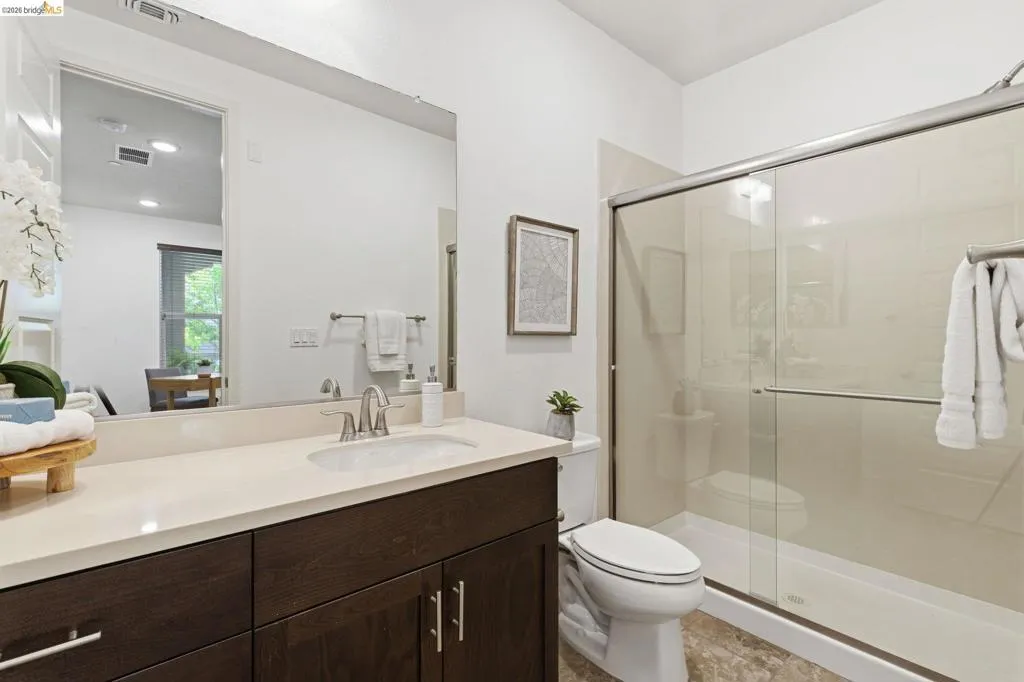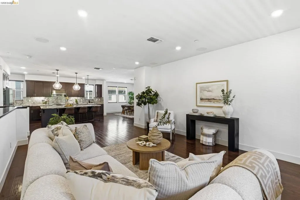 Step into luxury living spanning an impressive 2,303 sq ft across three thoughtfully designed floors, this rare 4 bed, 3.5 bath Alameda Landing residence delivers the space, style, and sophistication of a single-family home with all the ease of modern condo living in a desirable location with great schools, shopping, parks and views of the San Francisco bay nearby. A level-in entry with an en-suite bedroom sets the tone for flexibility and function — perfect for a home office, guest suite, or multi-generational living. Upstairs features an open concept layout for effortless flow between the dining room, living room, half bath, and a to-die-for kitchen that will instantly make you salivate. Access the breezy balcony for entertaining directly from the living room. The sun-drenched top level offers a thoughtfully placed laundry closet, two generously sized secondary bedrooms, a full bathroom, and spacious primary suite with walk-in closet, en-suite bathroom, and private balcony. Park your car in the garage and embrace city life with the complimentary BART shuttle, the nearby ferry terminal, the free water taxi, and multiple AC Transit bus lines putting the entire region at your fingertips. In Alameda Landing, you truly get the best of all worlds. Come see it. You'll want to stay forever.