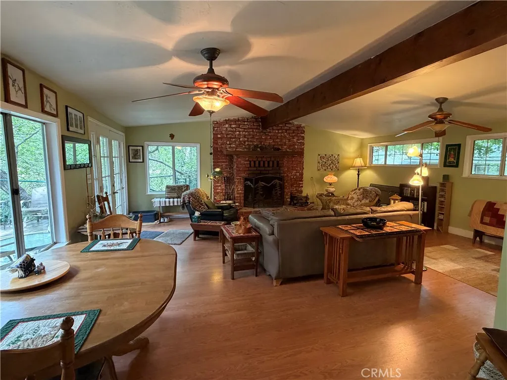 Creekside Escape in Happy Jack – Your Private Retreat in Lytle Creek Looking for a peaceful getaway without the long mountain drive? This charming cabin in the sought-after Happy Jack area of Lytle Creek offers the perfect blend of comfort, nature, and convenience. Set right along a gently flowing stream, this property invites you to slow down and enjoy the calming sounds of water just steps from your door. Inside, you’ll find a warm and inviting living space featuring a wood-burning fireplace, exposed beam ceilings, and durable laminate flooring. A cozy nook provides the perfect spot for morning coffee or a quiet reading corner, while ceiling fans throughout help keep the home comfortable year-round. The dining area offers plenty of space to gather, and the rustic-style kitchen is full of character with knotty pine accents, tile countertops, tile flooring, and a classic wood-burning stove. All appliances are included, making this home move-in ready. Both bedrooms are comfortably sized. The primary bedroom features mirrored closet doors, laminate flooring, and a ceiling fan, while the second bedroom showcases knotty pine walls, tile flooring, and its own fan—ideal for guests or flexible use. The bathroom is thoughtfully updated with a pedestal sink, tub/shower combo, linen storage, and newer fixtures. Step outside to a yard area with gated access to the creek—perfect for relaxing, entertaining, or simply enjoying the peaceful surroundings. Whether you're listening to the water from the deck or unwinding under the trees, this property delivers a true sense of escape. Located just a short 10–20 minute drive from shopping, dining, and freeway access, you’ll enjoy a quiet, tucked-away setting without sacrificing convenience. The Lytle Creek community also offers a community center and senior center with activities and social events. Outdoor recreation is right at your fingertips—fishing, hiking, camping, and picnicking are all nearby. Property Notes: Situated on US Forest Service leased land If you’ve been dreaming of a serene retreat with natural charm and easy access, this Creekside cabin is ready to welcome you home.