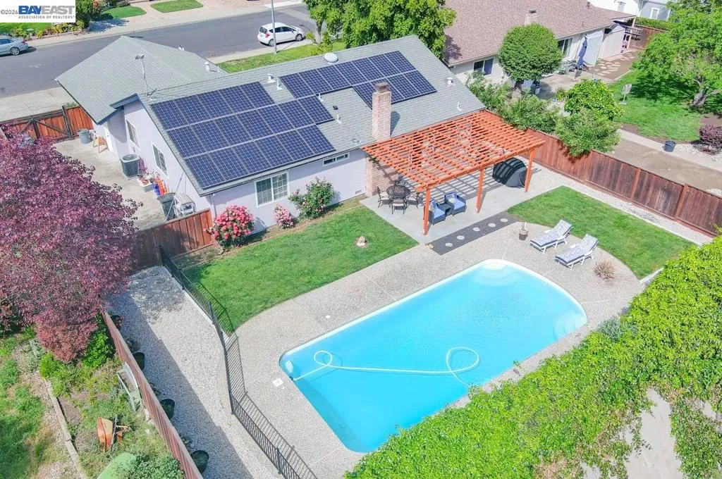 Fully remodeled single-level 4BR/2BA home in a prime Livermore location! Features include a gourmet granite kitchen, wood floors, and energy-efficient upgrades with solar and newer HVAC. The massive 8,346 sq. ft. private lot backs to open space and boasts a sparkling pool, expansive patio, and gated RV/Boat parking. Steps from parks and top-rated schools in a highly bikeable neighborhood. Move-in ready luxury with a resort-style backyard—don't miss this rare opportunity!