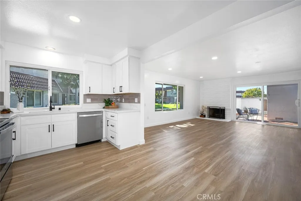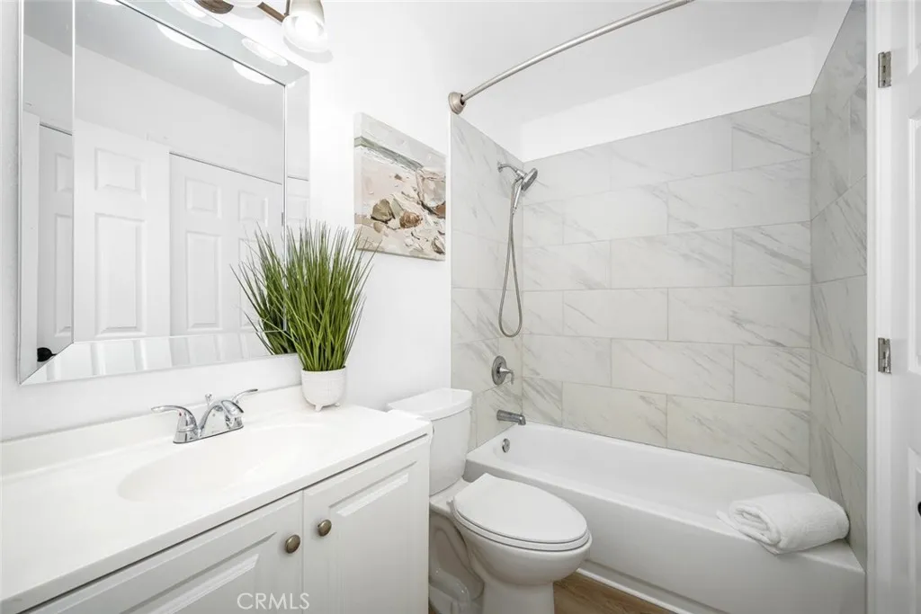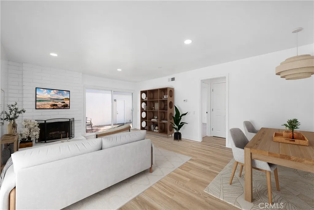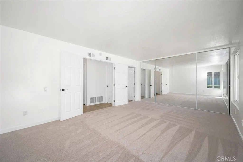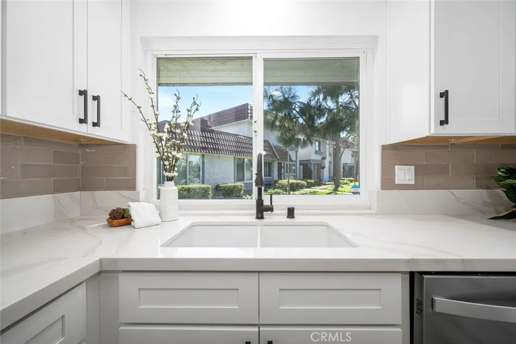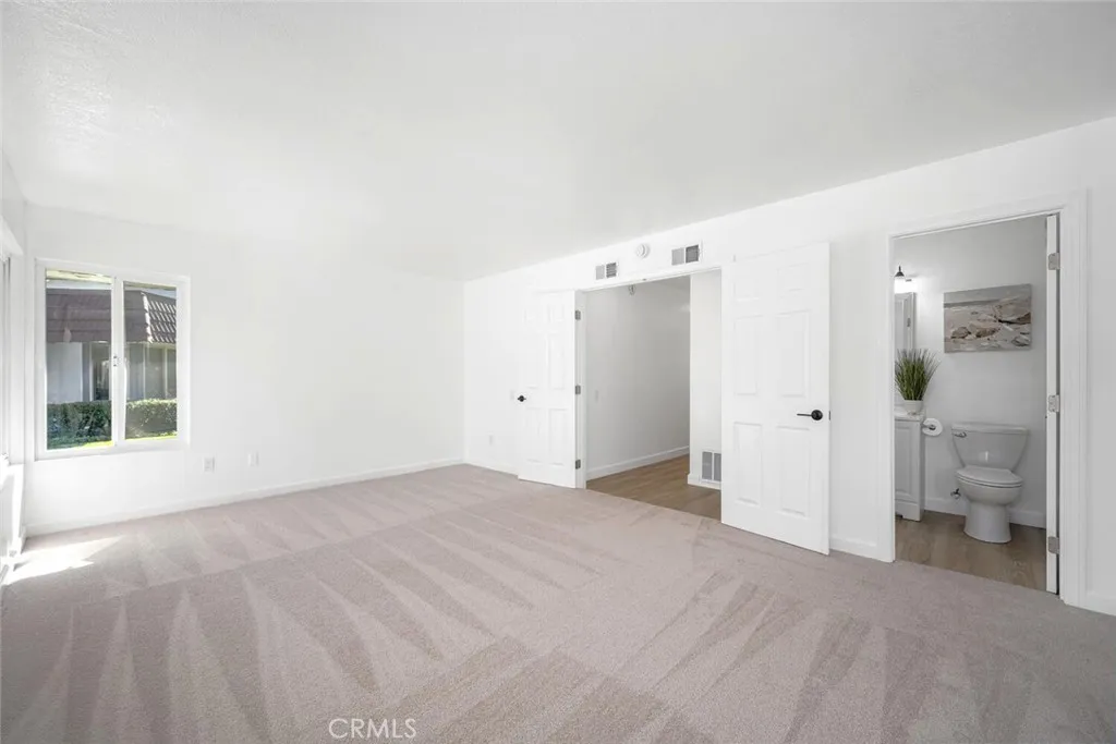 OPPORTUNITY AWAITS! EXCEPTIONAL PARK-LIKE LOCATION TUCKED AWAY IN THE HEART OF CYPRESS VILLAGE, WITH EXTENSIVE REMODELING THROUGHOUT! THIS GORGEOUS END UNIT, WITH DUAL PRIMARY SUITES, HAS BEEN TRANSFORMED WITH STUNNING UPGRADES & STYLISH TRENDY FINISHES. This ultimate sanctuary blends timeless elegance with modern luxury, beginning with the spacious living room boasting brand new wood-look vinyl flooring, a gas fireplace, recessed lighting, and a truly serene greenbelt view. Enjoy open-concept living where the dining space flows into the newly designed kitchen, featuring gorgeous Koville custom-built soft-close cabinetry, impeccable quartz counters, glossy subway-tile backsplash, a new microwave & dishwasher, a large pantry cabinet, and recessed lighting. Thoroughly immersed in natural lighting and perfect for entertaining friends & family. You will appreciate the generously sized primary suite, with brand-new plush carpet, dual mirrored closets, a slider to your private patio, and an upgraded ensuite bath with a shaker-style vanity, quartz countertop, on-trend sink & faucet, and a walk-in shower. The 2nd primary suite features double-door entry, new plush carpet, an entire wall of substantial new mirrored wardrobe space, delightful greenbelt views, and an immaculate full ensuite upgraded bath with beautiful tile surround. Additional upgrades & amenities include dual pane windows & sliders, smooth ceilings, new interior paint, new panel doors & door casing, new modern black hardware, new high baseboards, new vanity mirrors & medicine cabinets, new toilets, a Carrier Furnace & A/C, an interior laundry closet, and substantial storage space. The backyard patio offers an inviting retreat! Here, enjoy low-maintenance living with an aesthetically appealing stucco wall, and convenient access to a fully finished 2-car garage with an upgraded garage door & upgraded lighting. Adjacent guest parking is a phenomenal bonus!! Award-winning local schools are Patton Elementary, Bell Intermediate, & Pacifica High School, and all are highly rated 9's & 10's. Enjoy proximity to shopping, dining, LA Fitness, nearby local parks, Costco, Trader Joe's, Disneyland, Knotts Berry Farm & easy access to local Fwys! Wonderful Cypress Village has 3 Pools, a Huge Spa, a Kiddy Pool, Tennis, Pickle Ball, Lush Greenbelts & Meandering Pathways. Enjoy resort-style living in this premier community with the world-famous beaches of Orange County just a few miles away. Welcome Home!