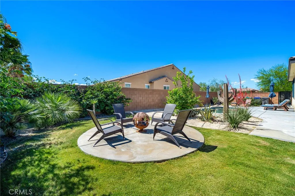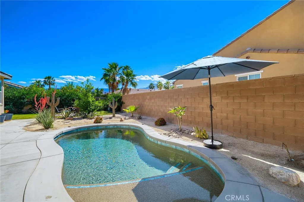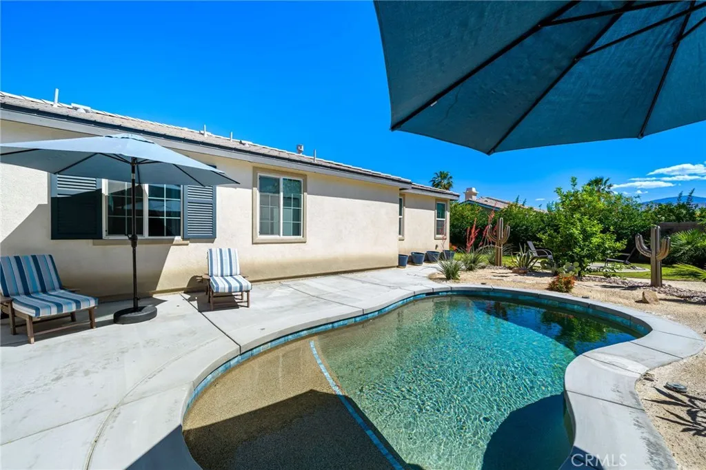 Experience elevated desert living in this beautifully upgraded Pomona plan, where modern ranch design meets a private La Quinta oasis. Situated on over a quarter-acre lot, this home offers exceptional space, privacy, and expansive side yards—perfect for entertaining, recreation, or future enhancements. At the heart of the home is a stunning, modern chef-inspired kitchen featuring an oversized center island, sleek quartz countertops, and a generous walk-in pantry. The open-concept design flows effortlessly into the expansive great room and dining area, creating an ideal setting for both everyday living and upscale entertaining. The primary suite is a true retreat, complete with a spa-like bath and two spacious walk-in closets. Three additional bedrooms, along with a private office, provide flexibility for guests, family, or a home office. Step outside to your own private sanctuary—an entertainer’s dream—highlighted by a sparkling custom-shaped pool, a spacious covered patio, and beautifully curated desert landscaping that enhances both serenity and style. Located within a gated community, this home also features a three-car garage with a private side-entry bay, ideal for a golf cart, workshop, or additional storage. Adding even more value is the fully owned and paid-off solar system, delivering energy efficiency and long-term savings. This move-in-ready residence offers the perfect blend of luxury, functionality, and the quintessential La Quinta lifestyle.