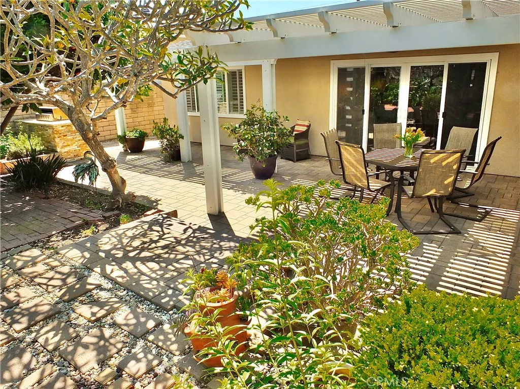 Highly desirable University Park Estates with a cul-de-sac location! This cheery and bright home feels welcoming the moment you step inside. Notice the lofty ceilings and the lush greenery in the backyard beyond. The three-sided fireplace extends to the ceiling creating a warm and cozy environment. As you make your way to the dining room, note that the kitchen is just around the corner, a nice balance of openness to the living area, yet tucked away for the busy cook. You will find lots of counter / workspace here! This property features 5 bedrooms. One of the rooms is being used as an office / den, the convertible desk / murphy bed provides an option for work or guest use. A secondary office with garage access is a hub for the conveniences of high-speed data technology. As you make your way to the backyard notice the tranquil setting with an abundance of fruit: apples, figs, orange & lemon! This backyard beckons summer barbeques whether it be a quiet evening at home or open doors with guests. Dual pane windows, copper plumbing, updated ducting, furnace and sewer line, drought tolerant landscaping, paver driveway & patio, electric car charging station, built-in BBQ, espresso machine with direct filter hook-up and so much more! Located in a quaint neighborhood with elementary school, playground, walking / bike paths and close proximity to Belmont Shore, shopping, restaurants, movie theaters, schools, beaches, farmers markets, golf courses, the restoration-in-progress Los Cerritos Wetlands and events for the 2028 Olympics!