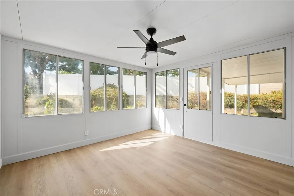 COMPLETELY REMODELED SINGLE-STORY CUL-DE-SAC HOME WITH 27 PAID OFF SOLAR PANELS - This single-story residence features 4 bedrooms and 2 bathrooms on a large pie-shaped lot at the end of a cul-de-sac with mature landscaping. The home includes 27 paid-off solar panels, a newer AC and furnace, and a whole-house fan. The open floor plan is finished with New luxury vinyl plank flooring, New baseboards, New recessed lights, and New interior and exterior paint. The kitchen features New wood shaker soft-close cabinets and quartz countertops. Both bathrooms include New vanities and New tile. All rooms have New ceiling fans and dual-pane windows. The oversized primary suite includes a walk-in closet and a private patio. The layout includes a sunroom and a large wrap-around patio, with one bedroom opening directly to the sunroom, perfect for a home office or playroom. Conveniently located near the 60 and 71 freeways, Ontario Airport, and walking distance to shopping and schools. Come, See This Home Before It's TOO Late!