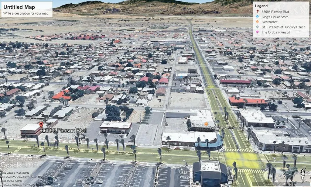 66595 Pierson BLV Desert Hot Spring CA Features. 2,400 sf Building 2 levels building. Locate a 400 ft away from date palms and the DHS Offices. Face to Commercial center. Banck on the led side of the property. Parking on the side plus and the Back of the Property. Perfect you owner uses Selling price $598,000.00 Highly desirable Commercial Zoning. Services Available, Gas, water, Electricity AC Conditions Commercial Building for Sale. / Prime Central Location.This multi-story building is ideally located on the main street, offering excellent visibility and accessibility. The property includes convenient parking facilities on both the side and rear of the building. Positioned next to a bank and directly across from a busy shopping center, the building sits just 400 meters from the city's primary intersection, the central hub for local commerce. This area hosts a wide range of shops, municipal offices, and essential services, making it a highly desirable location for business operations. The surrounding infrastructure features wide, two-lane streets and strong transportation connectivity, ensuring ease of access for customers and staff alike. The building is Currently Vacant to providing a great opportunity for immediate occupation or any idea Call to Salvador Hernandez. ESPANOL. Edificio comercial en venta . Ubicacion centrica privilegiada, Este edificio de vdos plantas goza de una ubicacion ideal en la calle principal, ofreciendo una excelente visibilidad y accesibilidad. La propiedad cuenta con comodas instalaciones de estacionamiento, situadas tanto en el lateral como en la parte trasera del edificio. Ubicado junto a una entidad bancaria y justo enfrente de un concurrido centro comercial, el edificio se encuentra a tan solo 400 fts de la interseccion principal de la ciudad, el epicentro del comercio local. Esta zona alberga una amplia variedad de comercios, oficinas municipales y servicios esenciales, lo que la convierte en una ubicacion sumamente atractiva para el desarrollo de actividades empresariales. La infraestructura circundante se caracteriza por calles amplias.
