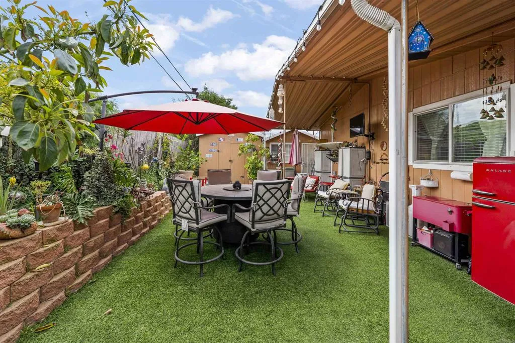 Beautifully maintained 3 bedroom, 2 bathroom manufactured home offering 1,456 square feet of comfortable living space. This home features a spacious and functional layout that has been exceptionally well cared for, making it truly move in ready. Step outside to an incredible backyard designed for both relaxation and entertaining. Enjoy a fully upgraded outdoor space complete with a jacuzzi, multiple large storage sheds, mature trees, and plenty of room to host. It truly feels like your own private retreat. Additional highlights include four covered parking spaces and an unbeatable space rent of only $855. Priced under $300,000, this is an incredible opportunity that will not last long.
