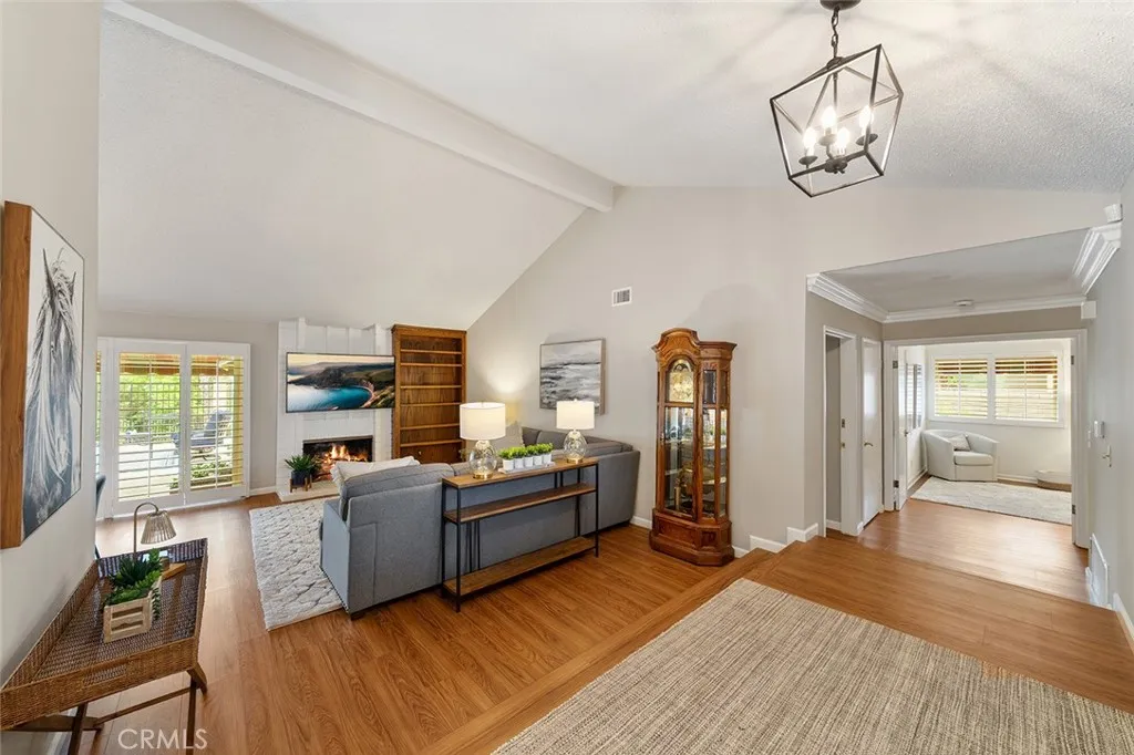 A beautifully maintained and well-loved home, thoughtfully styled by a professional stager and offered fully furnished for future tenants, creating a seamless, move-in ready experience. The inviting curb appeal begins with lush landscaping, freshly painted wrought iron, and updated light fixtures that frame newly painted double doors. Step inside to a welcoming landing, where the home naturally unfolds. Just a few steps down, the formal living & dining rooms offer warmth & character w/ built-in shelving, a painted brick fireplace, plantation shutters, & sliding doors to the backyard. To the left from the landing, the family room features a charming wood-burning stove, additional backyard access, & a circular flow through the light & airy kitchen. Here, you’ll find generous storage, rounded-edge counters, crown molding, recessed lighting, & a large picture window overlooking the backyard & golf course. To the right of the landing, an L-shaped hallway leads to the private living quarters. The spacious primary suite includes a retreat area w/ abundant closet space, a cozy fireplace, & sliding doors to the backyard; ideal for an office, gym, or sitting area. The en suite bath features a long vanity, updated lighting, & a private shower and commode. Additional bedrooms are thoughtfully positioned, w/ two behind double doors & the remaining rooms tucked toward the end of the hall, each staged to evoke tranquility. A full bathroom serves this wing. Off the family room is access to the three-car garage and laundry, plus a bonus room designed for entertaining. Complete with a pool table, Tiffany-style lighting, fresh paint, updated fixtures, a corner fireplace, & a wet bar with seating for four, this space also includes a ¾ bath & backyard access. With four access points, the backyard is an entertainer’s dream; featuring a newly plastered pool, golf course views, a built-in BBQ, and a covered pergola with outdoor furnishings for dining al fresco. A seating area off the primary suite, surrounded by roses, offers a peaceful place to enjoy morning coffee. All furnishings are included, along with lawn and pool maintenance. Ideally located in the desirable Via Verde neighborhood of San Dimas on a quiet, established street. It is close to a grocery store and restaurants. A fire station is nearby. 1 mile to Via Verde park and 1.6 miles to Frank Bonelli Park.