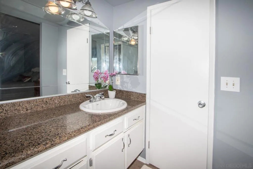 Welcome to a beautifully refreshed townhome in sought after Amesbury Court in the heart of Poway—where thoughtful upgrades, smart design, and everyday functionality come together to create a home that truly stands out. The main level features an open, comfortable living area with a cozy fireplace that flows into the dining room, kitchen and half bath. This spacious move in ready townhome has generously sized dual master bedrooms with private ensuite bathrooms. Step inside to a light-filled interior enhanced by new luxury vinyl plank flooring that flows seamlessly throughout the home, offering both durability and a modern aesthetic. Fresh designer paint creates a crisp, inviting ambience.The kitchen has been tastefully improved with a newer stove and dishwasher, delivering both convenience and functionality for everyday living and entertaining. Additional upgrades include new light fixtures and 3 white vinyl dual-pane Low-E windows, enhancing energy efficiency while bringing in abundant natural light. An attached 2 car garage offers abundant storage Every detail has been carefully considered to create a home that is both updated and effortlessly livable.This residence offers a low-maintenance lifestyle in a desirable Poway known for its top-rated schools and strong sense of community. Amesbury Court amenities include a sparkling pool & spa. Close to a city community center, tennis courts, skate park, and children's park. Don't miss the opportunity to own a turnkey home where quality updates & ideal location deliver except value! A Must See!