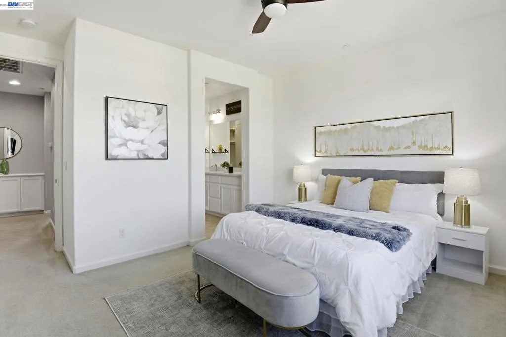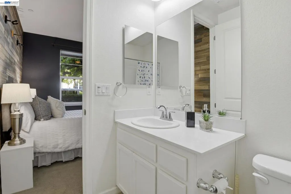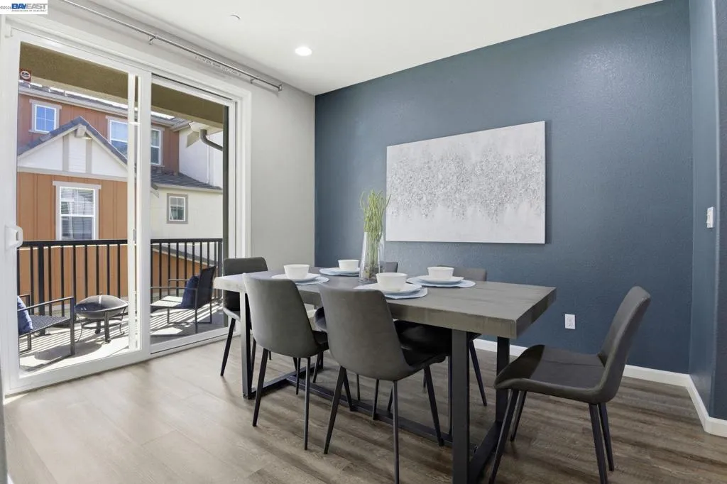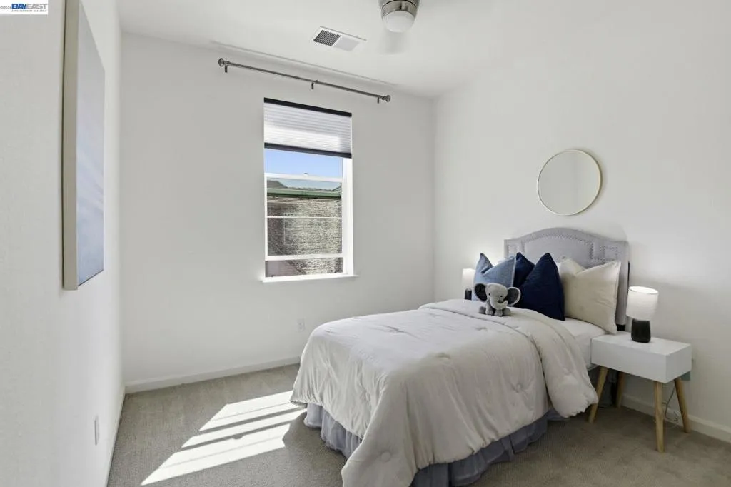 This is the one buyers wait for! Welcome to this NORTH-facing, beautifully designed 3-bedroom + DEN, 3.5-bath townhome in the sought-after Jordan Ranch – Trio community, where modern functionality meets elevated design and everyday comfort. From the moment you enter, the street-level bedroom with full bath offers flexibility for guests, multi-generational living, or a private work-from-home retreat, enhanced by tasteful wall paneling that adds warmth and architectural character. The heart of the home unfolds on the main level—an open-concept living and dining space filled with natural light, thoughtfully styled with accent walls for a refined, designer-inspired touch. The adjacent gourmet kitchen features white cabinetry, granite countertops, and stainless steel appliances, blending timeless finishes with everyday practicality. A dedicated den/office provides the perfect space for remote work, creative pursuits, play area, gym, or a quiet reading nook. Upstairs, retreat to spacious en-suite bedrooms, including a serene primary suite with a well-appointed bath and ample closet space, designed for comfort and privacy. Additional highlights include a water softener system and EV-ready garage for modern living. Ideally located near top-rated schools, parks, shopping, dining, BART, and major commuter routes (I-580 & I-680), offering seamless connectivity. A home that balances style, flexibility, and location—crafted for how you truly live.