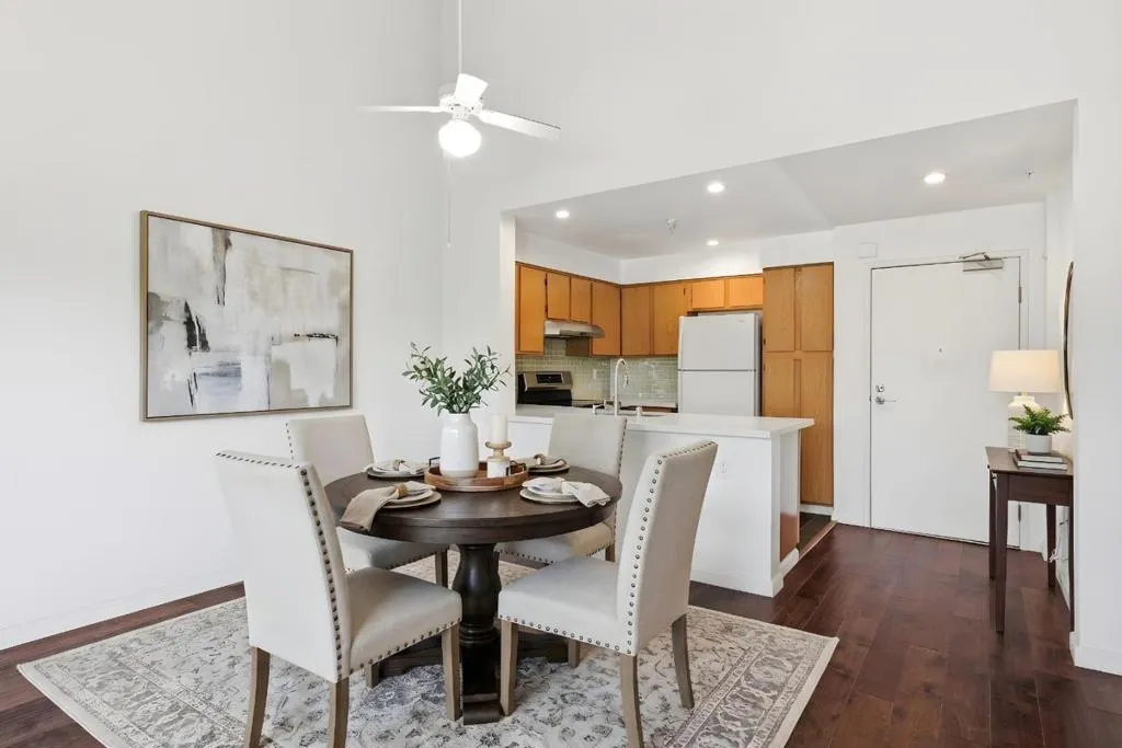 Set in the gated Adobe Hills community, this bright 1-bedroom, 1-bath condo offers privacy, vaulted ceilings, and an open living area with a fireplace. A private balcony overlooks the communitys peaceful, landscaped grounds. The kitchen features recessed lighting, sleek countertops, ample cabinetry, and flows into the living and dining areas. The bedroom is filled with natural light, and the bathroom includes a shower-over-tub and wide vanity. An in-unit washer and dryer, plus built-in shelving, add convenience. Additional features include a deeded parking space and storage unit. Residents enjoy a pool, tennis courts, a clubhouse, elevators, and beautifully maintained grounds. Conveniently located near Central Park, Lake Elizabeth, shopping, dining, trails, and major highways, this home also offers easy access to BART 10 mins walk and the rest of the Bay Area.