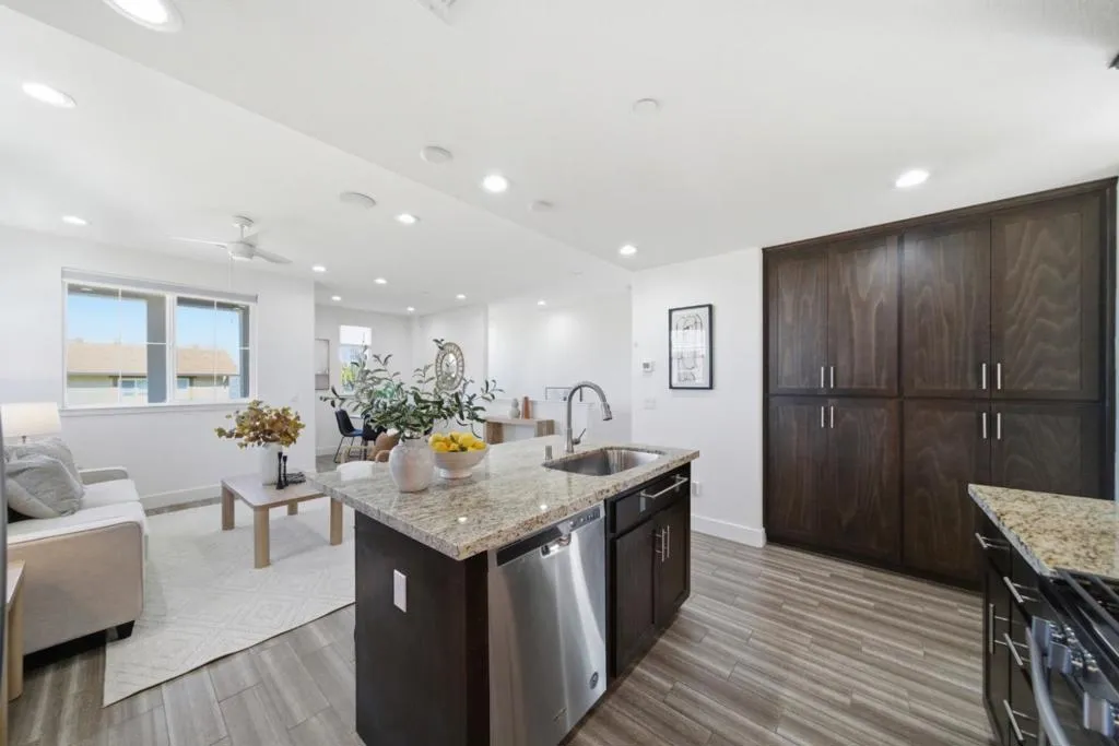Set back from the street, Bright south-facing end-unit with modern upgrades, enhanced privacy, and walking distance to Ranch 99! Less than 7 years new, this home features an open-concept layout with high ceilings, recessed lighting, and built-in ceiling speakers. Sunlight fills both the living areas and bedrooms throughout the day. The kitchen is designed for both functionality and style, featuring shaker style cabinets, a center island with timeless granite countertops and gas burner range, seamlessly connecting to the living and dining areas, Perfect for everyday living and entertaining. Upgraded with wood-look tile flooring in main living areas and bathroom for a clean, modern look with easy maintenance. Comfortable bedrooms include a walk-in closet, providing ample storage and a cozy retreat. Enjoy a Sun-filled balcony, along with charming details such as an arched entry, decorative metal window awnings, and a welcoming paver courtyard. Convenient access to Hwy 880 & 84, and the Dumbarton Bridge, Paseo Padre Pkwy & Decoto Rd, major tech shuttle routes & UC Bart, walking distance to Ranch 99, restaurants, N Gate Community & Grandal Greek Park. Located in highly sought after award-winning school district: Patterson Elementary (8) Thornton Middle (9) American High (10). --