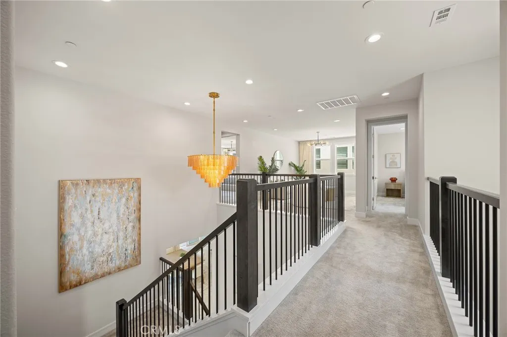 Residents enjoy exclusive access to resort-style amenities, including a large recreation center, two pools, two spas, 12 acres of parks, sports fields, and basketball, pickle ball, and volleyball courts. The home features a modern, open-concept layout with a bright living room, well-maintained kitchen and a beautifully organized backyard—truly embodying the essence of an ideal home. The first-floor office can be easily converted into an additional bedroom, creating a potential sixth room that is perfect for larger or multi-generational families. Upstairs, a cozy loft provides additional living space for relaxation or family gatherings. All four bedrooms are en-suite, ensuring comfort and privacy for every resident. The spacious primary suite offers a relaxing and private retreat, while the bathroom features a separate shower and soaking tub, creating a well-designed wet and dry separation. The property tax rate of approximately 1.05% and no Mello-Roos! Low HOA fee and ownership costs is highly attractive. All these elements make this home an exceptional choice for achieving a refined and aspirational lifestyle.