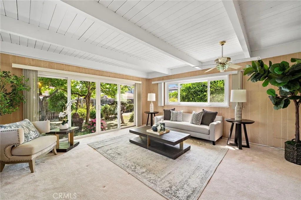 Absolutely charming, beautifully upgraded, and thoughtfully expanded single story home located in one of Midway City’s most desirable neighborhoods, just one block from Huntington Beach and within an award-winning school zone, close to Bella Terra, Old World Village, Golden West College, Little Saigon, and the beach, with convenient freeway access. This adorable 3 bedroom, 1 bath home offers approximately 1,363 square feet of comfortable living space, highlighted by a spacious family room addition featuring an open beam ceiling, mini-split A/C, and a wall of sliding glass doors that open seamlessly to the wrap-around backyard, creating the perfect indoor-outdoor flow for entertaining. The expansive yard includes multiple patio areas, wide side yards, a variety of fruit trees, and rear alley access through a back gate. The home boasts inviting curb appeal with a pristine lawn, lush tropical gardens, and a sweeping driveway that accommodates multiple vehicles and leads to a two-car garage. Step inside to an entry foyer that opens to a bright and welcoming living room and a sunlit kitchen with an eat-in dining area, tile countertops, gas range, vent hood, dishwasher, and abundant natural wood cabinetry. A convenient inside laundry room just off the kitchen offers additional storage. Most windows and sliders have been upgraded to dual pane, enhancing energy efficiency and comfort. The bathroom features tile flooring and tiled walls, a tub/shower combination with dual shower heads and grab bars, and all three bedrooms are equipped with ceiling fans. Perfect as a starter home, downsizing opportunity, or investment, this home offers charm, functionality, and an unbeatable location - a rare opportunity to enjoy expanded living space and coastal-close convenience at an exceptional value.