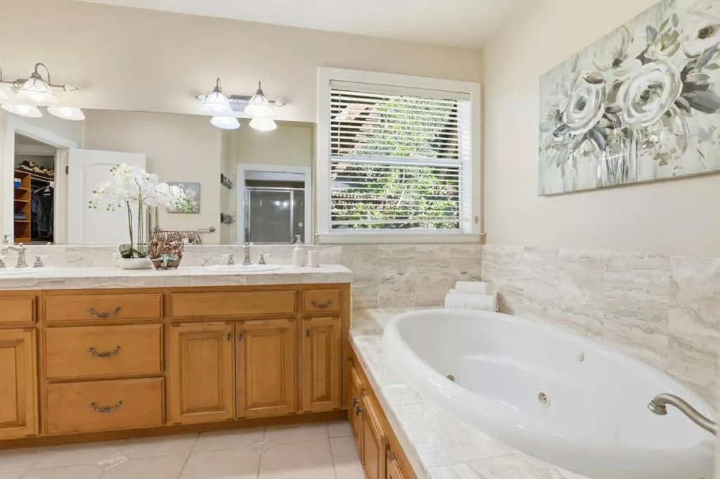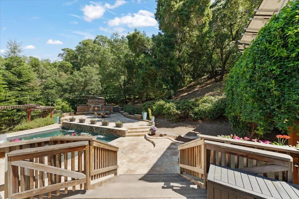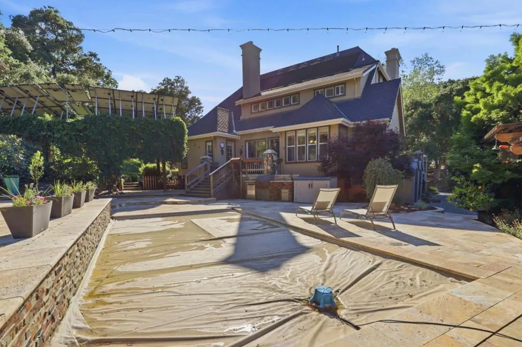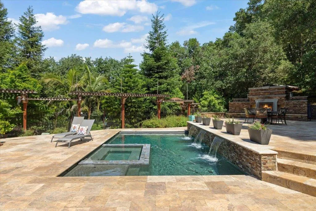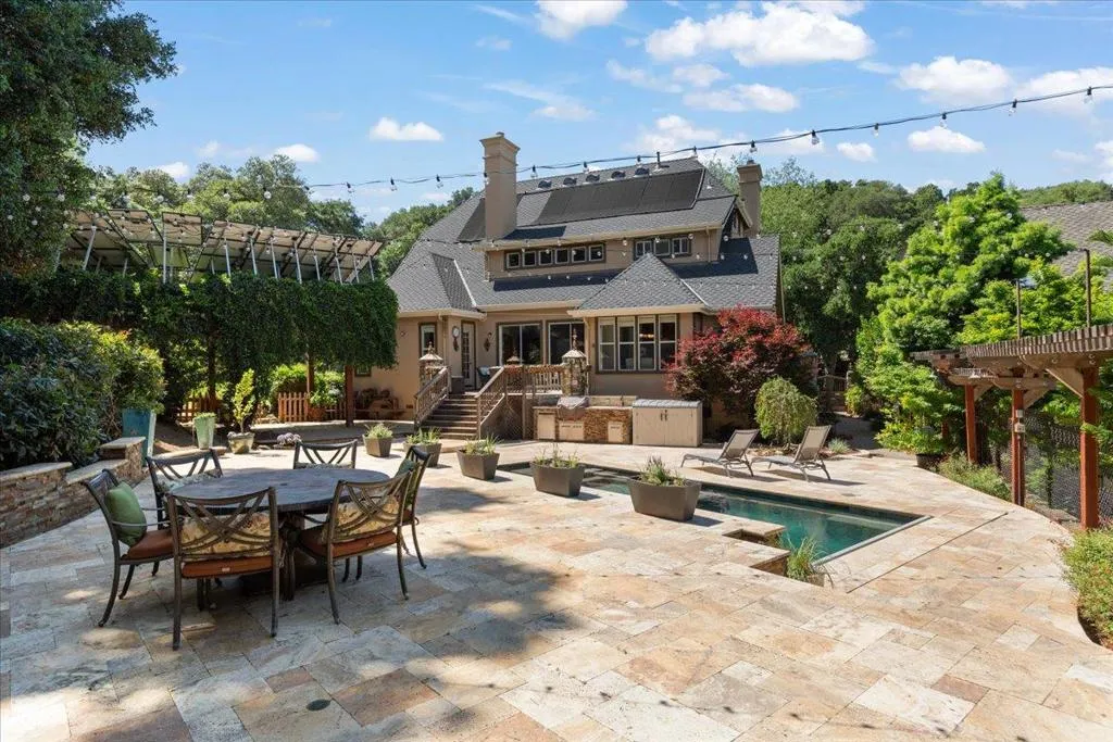 What if you could come home every day and feel like you are on vacation? Located in the Westside hills known for larger custom homes and low turnover, this is where homeowners stay for years and opportunities like this are rare. From the moment you arrive, you'll notice the timeless English-style architecture, a pavered driveway, and standout curb appeal. Inside, the home offers a spacious, light-filled layout with fresh interior finishes and a design that's both comfortable and functional. With two-zone HVAC, a whole house fan, and an owned 8+ kilowatt solar system, you get efficiency without sacrificing comfort. This is a home designed for everyday living and effortless entertaining. Step outside and everything changes. A custom pool and spa, solar heated, a fully equipped outdoor kitchen and a stunning stone fireplace create a true backyard retreat. And what really sets this property apart, you are surrounded on two sides by over 60 acres of forest. No rear neighbors. Just complete privacy and a peaceful hillside setting. In addition to the three-car garage with built-in workspace and storage, there's a bonus ~240 square foot room above the garage. Assigned to Christopher High and walking distance to Luigi Aprea Elementary, both, top rated local schools.