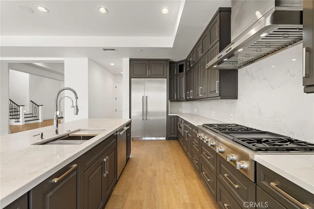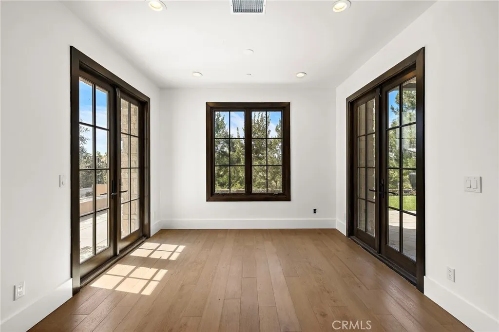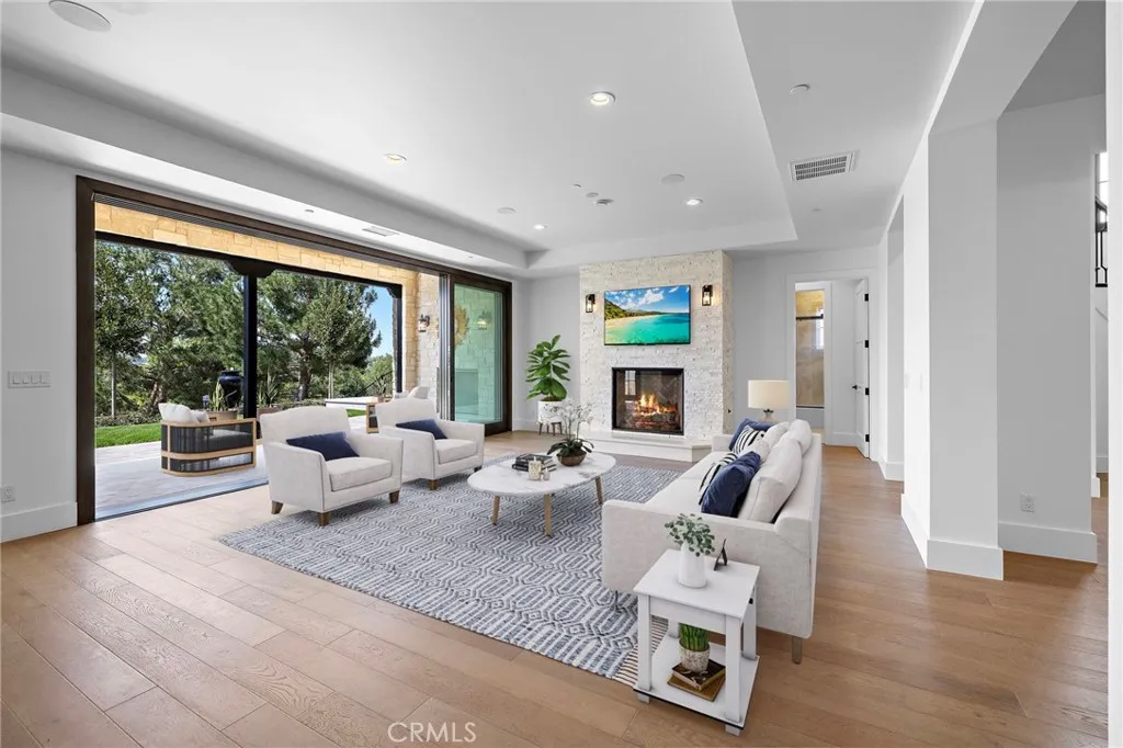 A masterpiece of craftsmanship and sophistication, this newly built Mediterranean estate—designed by renowned architect Eric Trabert—graces the coveted guard-gated community of Ladera Ranch’s Upper Covenant Hills. Offering 5 bedrooms and 6 bathrooms, this custom residence is set on a private, single-loaded cul-de-sac, delivering elegance, seclusion, and practicality. A meticulously curated landscape creates a striking first impression. Inside, approximately 4,090 square feet of refined living space blends grandeur with everyday comfort. The expansive great room showcases natural wood floors, an 8-zone surround sound system with whole-house monitoring and single-app control, and a warming fireplace. California doors create a seamless indoor-outdoor connection. Designed for both luxury and efficiency, the chef’s kitchen features premium Thermador appliances, a walk-in pantry, custom cabinetry, and a spacious dine-in area—ideal for casual mornings or elevated entertaining. Downstairs, two generously sized bedrooms with en-suite baths and an office just off the entry offer versatility for guests, multigenerational living, or a private workspace. Upstairs, a dramatic staircase with custom hand-forged wrought iron railings leads to the crown jewel: a serene primary suite with a spa-inspired bath, dual vanities, walk-in closet, fireplace, and a private balcony capturing breathtaking sunset views and coastal breezes. Two additional en-suite bedrooms with a charming balcony complete the upper level. Outdoor living is equally impressive, with a California Room featuring a fireplace, built-in barbecue, glass fire pit, lounge area, and elegant water features—creating a true entertainer’s retreat. Covenant Hills residents enjoy exclusive access to a private clubhouse and pool, miles of scenic trails, a putting green, parks, and resort-style amenities for an unparalleled lifestyle.