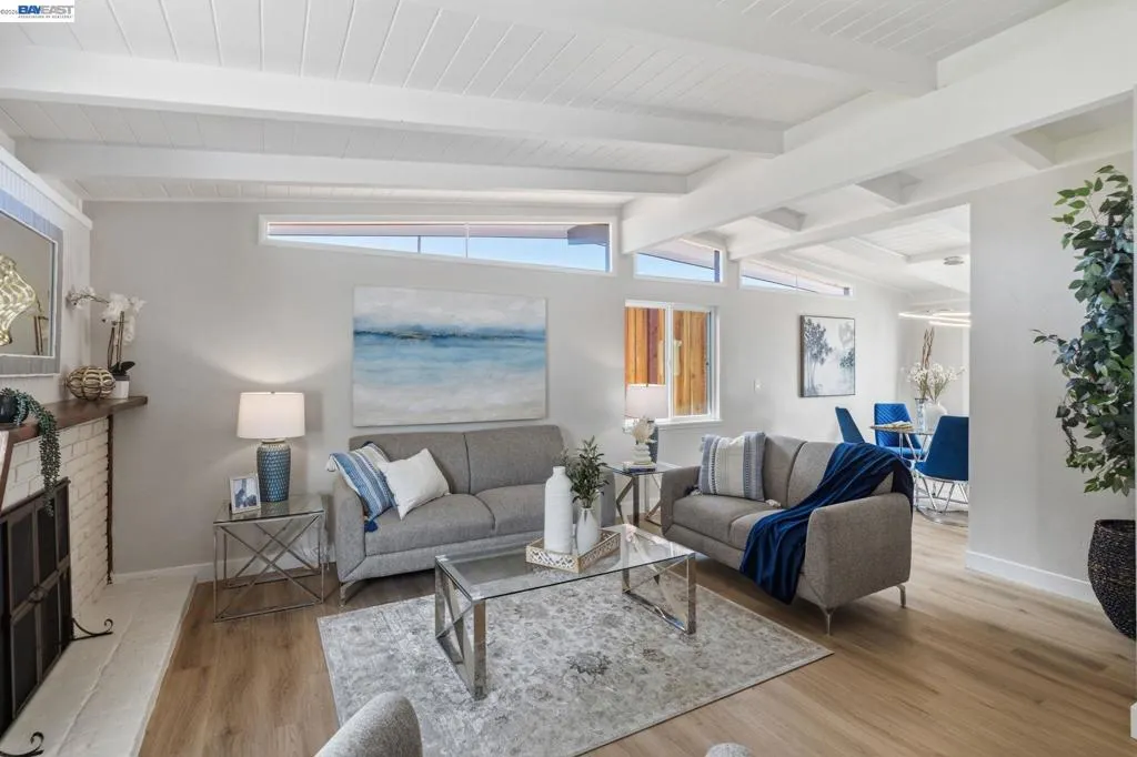 Pride of Ownership shows in this beautiful, mid-century modern home! An efficient floorplan, beamed ceilings, and light-filled rooms create a roomy and airy feeling throughout. The backyard feels exceptionally private due to the insulated and powered office shed, taller fencing, and mature, fruit-bearing pomegranate and Meyer lemon trees! There is just enough lawn for pets, without being overwhelming. The garage is spacious and offers additional options. Thoughtful, beautiful, and functional features include: a new insulated roof and gutters, new central heat and cooling via the energy-efficient heat pump (no wall heaters!), newer double pane windows, new doors, new SPC Vinyl flooring throughout, fresh interior and exterior paint, new quartz countertops, and tall cabinets in the kitchen. All appliances are new and included; gas stove present, but 220v outlet also present. Both bathrooms have been updated. The location has minimal traffic compared to other streets in the area due to the "L shaped" street. Located in the South Sundale neighborhood which has easy access to HWY 880 OR 680 via Automall/Durham, Stevenson, or Washington Blvd. BART, Whole Foods, and Costco, and Lake Elizabeth are only a few city blocks away. Make this GEM YOUR next HOME!