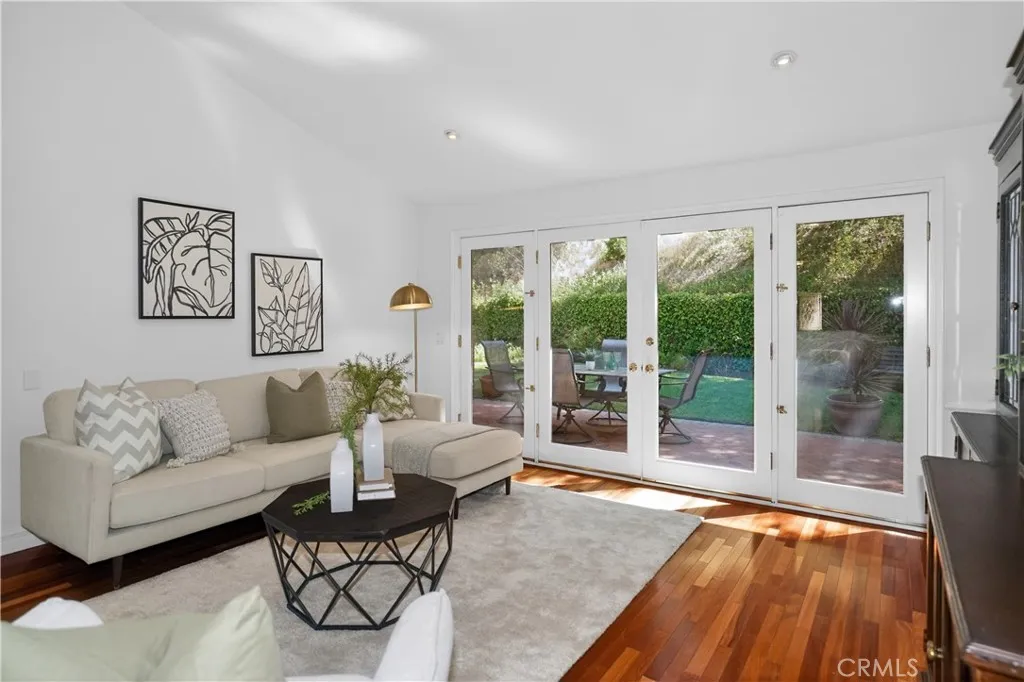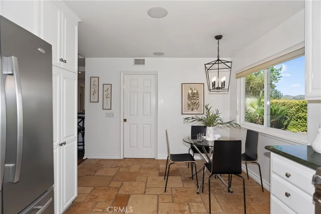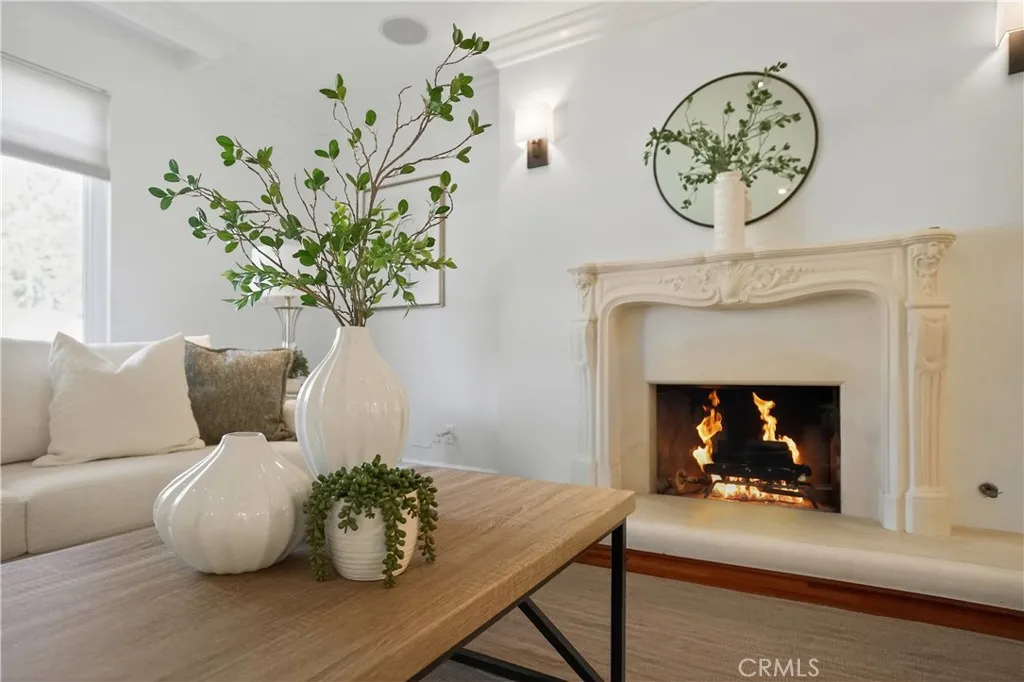 Welcome to this unique opportunity in the highly sought-after Fountainwood community of Agoura Hills. This exceptional single-story home offers over 2,100 square feet on an expanded lot exceeding 40,000 square feet—a combination of size, privacy, and potential that is seldom available. Ideally located on Carell Avenue, one of Fountainwood’s most desirable streets, the property enjoys wider spacing and no backyard neighbors, creating a level of privacy that is increasingly hard to find. From the moment you arrive, the home’s gorgeous curb appeal immediately stands out. Enter through an inviting atrium into a bright, flowing floor plan. Rich cherry wood flooring, custom moldings, baseboards, paneling, and wainscoting—crafted by a local artisan—add warmth and character throughout. The step-down living room is anchored by a striking limestone decorative fireplace, creating a sophisticated yet comfortable focal point. The kitchen features travertine floors, granite countertops, oak cabinetry, stainless steel appliances, and just outside the kitchen, a walk-in bar with counter seating—ideal for everyday living and entertaining. The spacious primary suite includes dual closets, including a walk-in, and a marble bath. Secondary bedrooms are well-proportioned, with a hall bath offering a relaxing spa tub. The backyard is where this home truly separates itself. Backing to open space, it offers exceptional privacy and tranquility. The oversized lot provides a rare opportunity to build a view deck on the hillside—unlocking what could become one of the most compelling view properties in Agoura Hills. The brick patio with awning is a perfect outdoor sanctuary, and is a blank canvas for a future pool or custom outdoor retreat. Additional features include owned solar panels (offsetting electric costs), smooth ceilings, recessed lighting, built-in garage storage, fresh paint, a tile roof, and a concrete driveway designed for long-term, low-maintenance living. Fountainwood is known for its peaceful setting, strong sense of community, and access to award-winning schools within the Las Virgenes Unified School District. Surrounded by scenic mountains, hiking and biking trails, and parks, yet just minutes to shopping, dining, the freeway, and the beach — this location offers the best of both convenience and lifestyle. The fire in the decorative fireplace was added virtually.