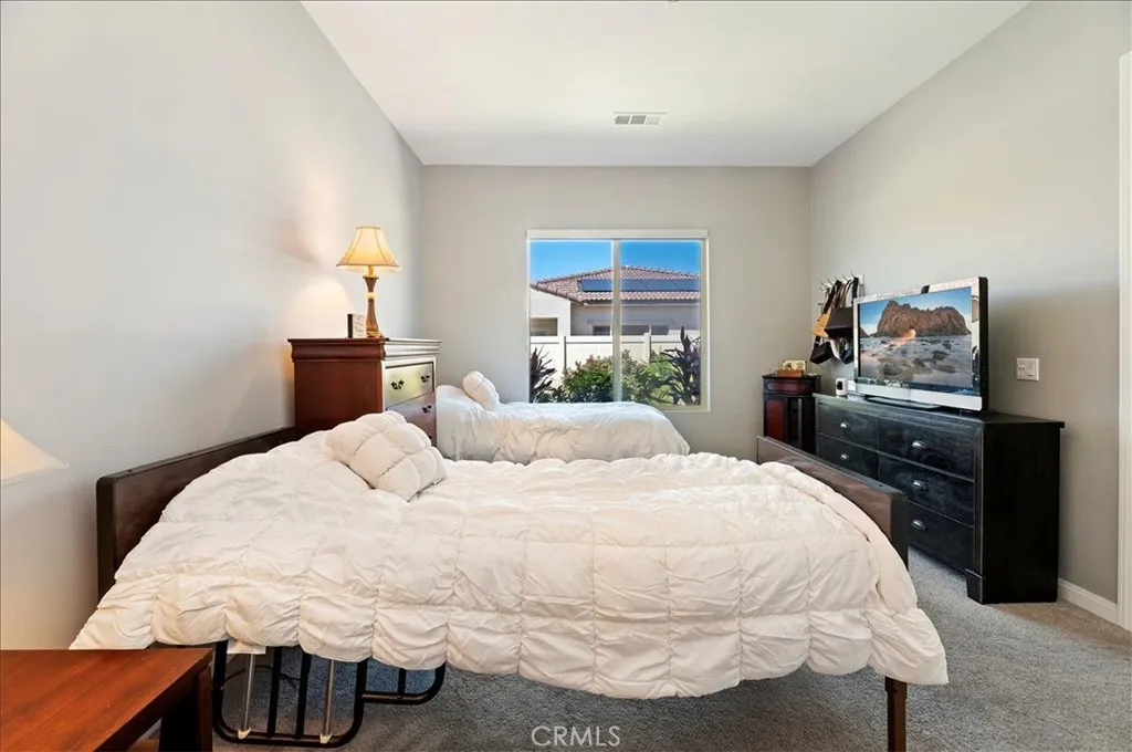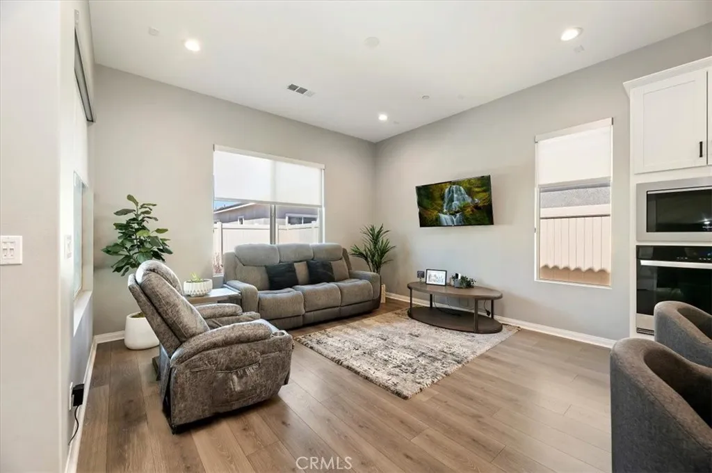 Welcome to 11930 Greenpeak Street, located in the highly sought-after 55+ gated community of Terramor—where resort-style amenities and scenic surroundings create the perfect place to call home. This beautifully maintained single-story residence features paid-off solar, offering both comfort and energy efficiency. Step inside to an open and airy floor plan with high ceilings and abundant natural light throughout. The kitchen serves as the heart of the home, showcasing quartz countertops, a stylish backsplash, built-in cooktop, and a spacious island that seamlessly connects to the dining area and family room—ideal for everyday living and entertaining. Beautiful flooring and designer finishes carry throughout, while a versatile flex space provides the perfect option for a home office, den, or hobby room. The primary suite offers a peaceful retreat, complete with a spacious bathroom featuring dual sinks, a walk-in shower, linen storage, and a generous walk-in closet. A secondary bedroom with its own private bathroom ensures comfort and privacy for guests. Enjoy outdoor living under the covered patio, opening to a tranquil, low-maintenance backyard with artificial turf and pavers—perfect for relaxing or entertaining. Additional highlights include a two-car garage with direct access, a dedicated laundry room, and a water softener. Living in Terramor means embracing a true resort lifestyle. Residents enjoy access to a state-of-the-art fitness center, wellness studio, yoga classes, indoor pool, resort-style outdoor pool and spa, tennis and pickleball courts, bocce ball, a pavilion bar, craft room, and outdoor gathering spaces with fireplaces and cooking areas. The community also features shaded seating areas, dog parks, and a separate family recreation area—all within a beautifully maintained gated setting. Move-in ready and waiting for you to enjoy the best of low-maintenance, resort-style living.