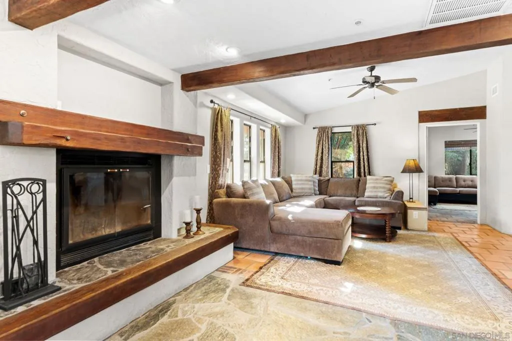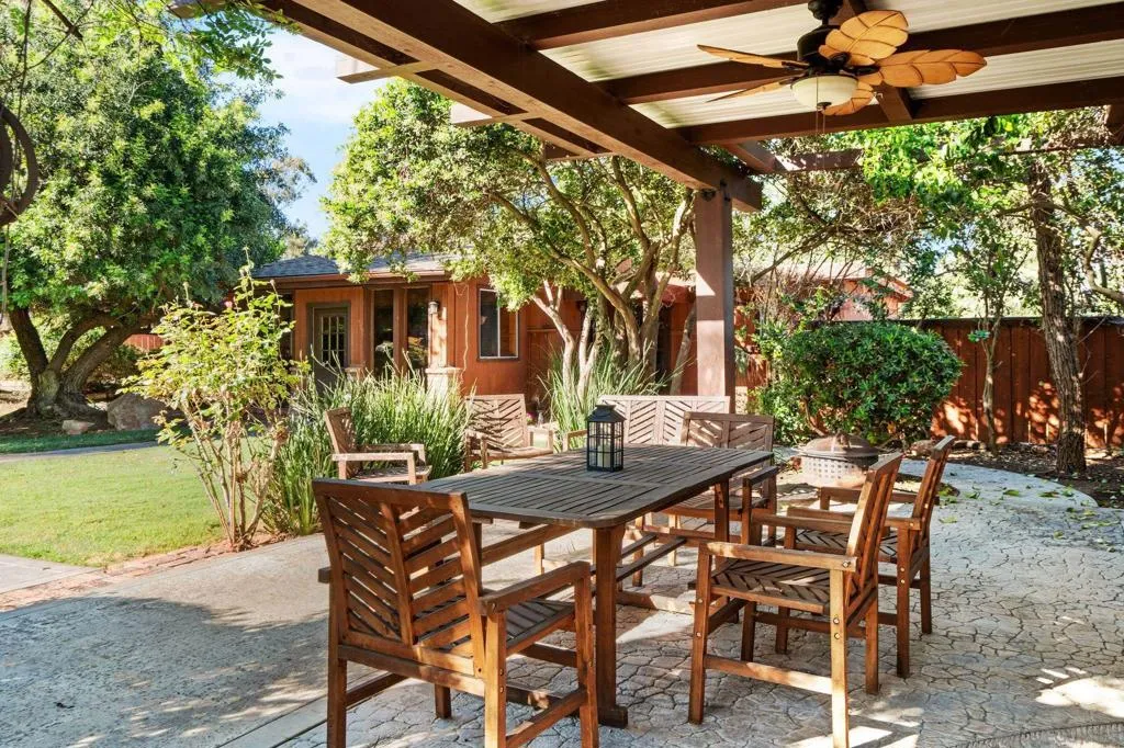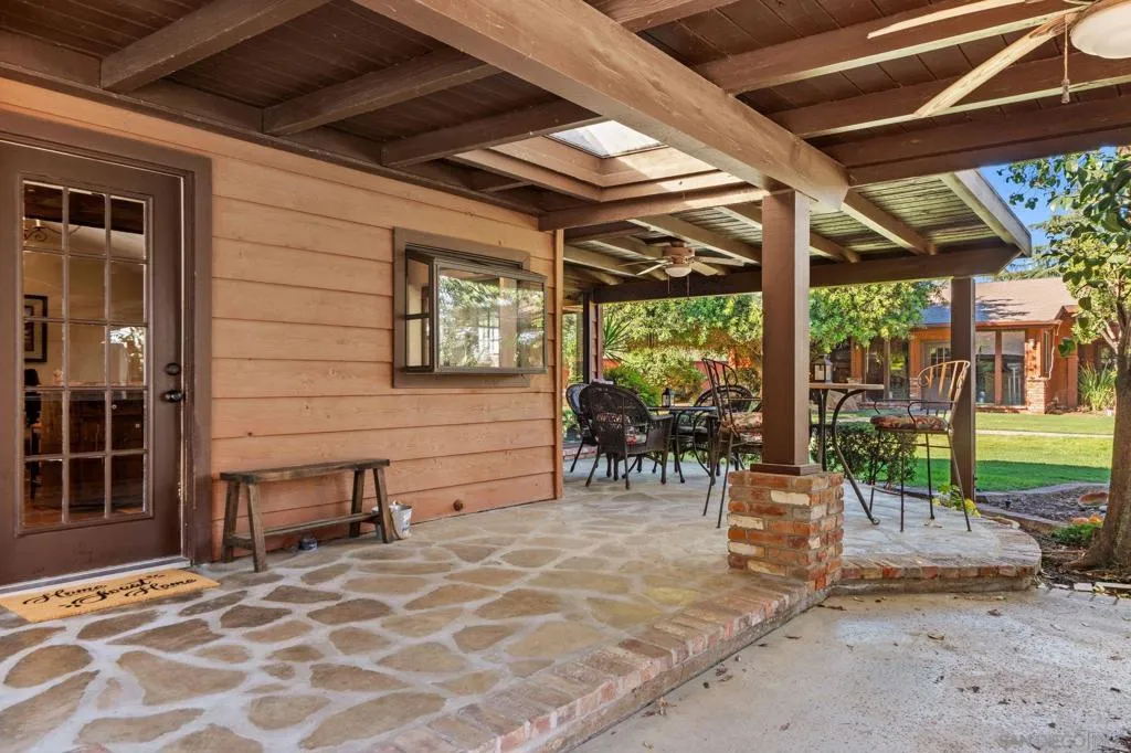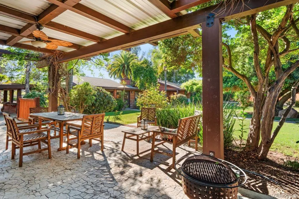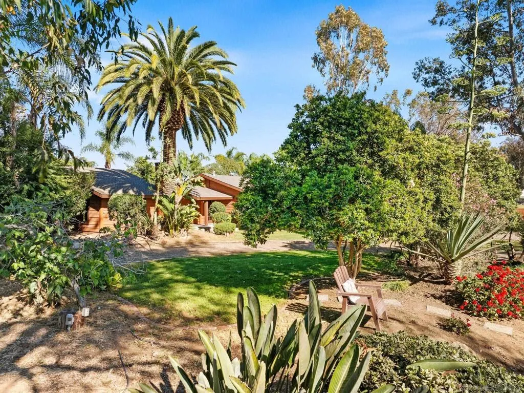 Welcome to your beautiful Ramona retreat, nestled on 1.17 acres of lush, level, and fully usable land. This stunning 3 bedroom, 3 bath home offers the perfect blend of peaceful country living designed for comfort, safety, and versatility. The beautifully maintained grounds create an ideal setting for small farm animals, entertaining guests, or cultivating your own dream garden oasis. Spanish-style finishes complemented by warm wood beam accents throughout the home. This property is fully equipped with a whole-house fire-safe sprinkler system powered by four 80-gallon well water tanks, an invaluable feature for rural living. Zoned A70 for light agriculture, multiple utility ready RV pads. Well and city water! In addition to the main residence, a spacious 1,500 sqft detached structure provides endless possibilities, ideal for a home gym, workshop, office, or garage. Step outside and take in the natural beauty that surrounds you. Stroll through the greenery, host unforgettable gatherings, or unwind at the end of the day beneath the wide-open Ramona sky in your private hot tub. Additional features like a water softener add to the home’s everyday comfort and convenience.