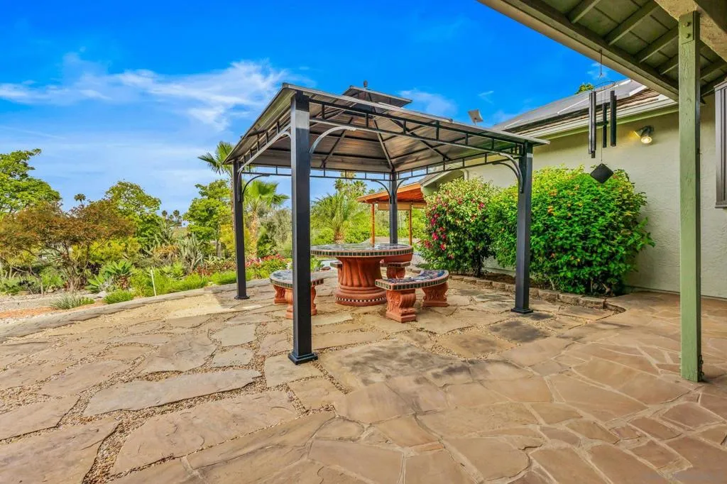 Incredible opportunity to own this custom-built single-story home set on a full acre of serene, private land. This 4-bedroom, 3-bath residence offers the perfect blend of comfort, functionality, and outdoor living. Enjoy a solar-heated pool and spa, lush mature landscaping, and multiple inviting outdoor spaces ideal for entertaining or peaceful relaxation. The expansive, fully fenced yard provides endless opportunities for gardening, recreation, or future expansion. The versatile fourth bedroom features its own en-suite bathroom and private exterior entrance—perfect for multigenerational living, guests, or potential rental income. Additional highlights include fully paid solar, enhancing both efficiency and long-term savings. This property offers a rare combination of space, privacy, and flexibility—all in a tranquil setting.