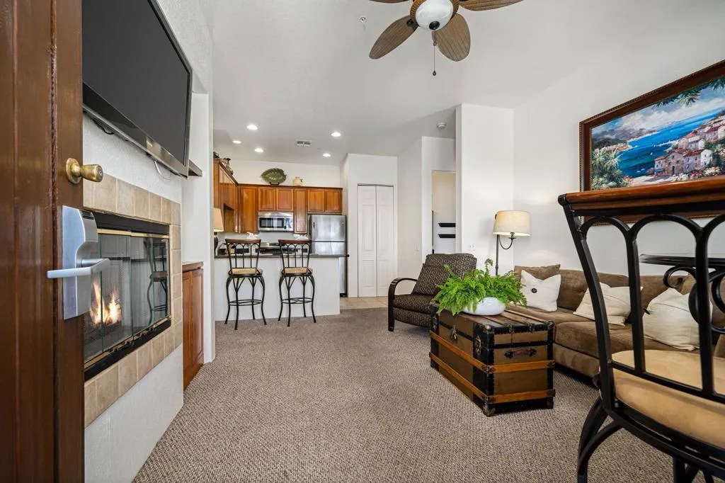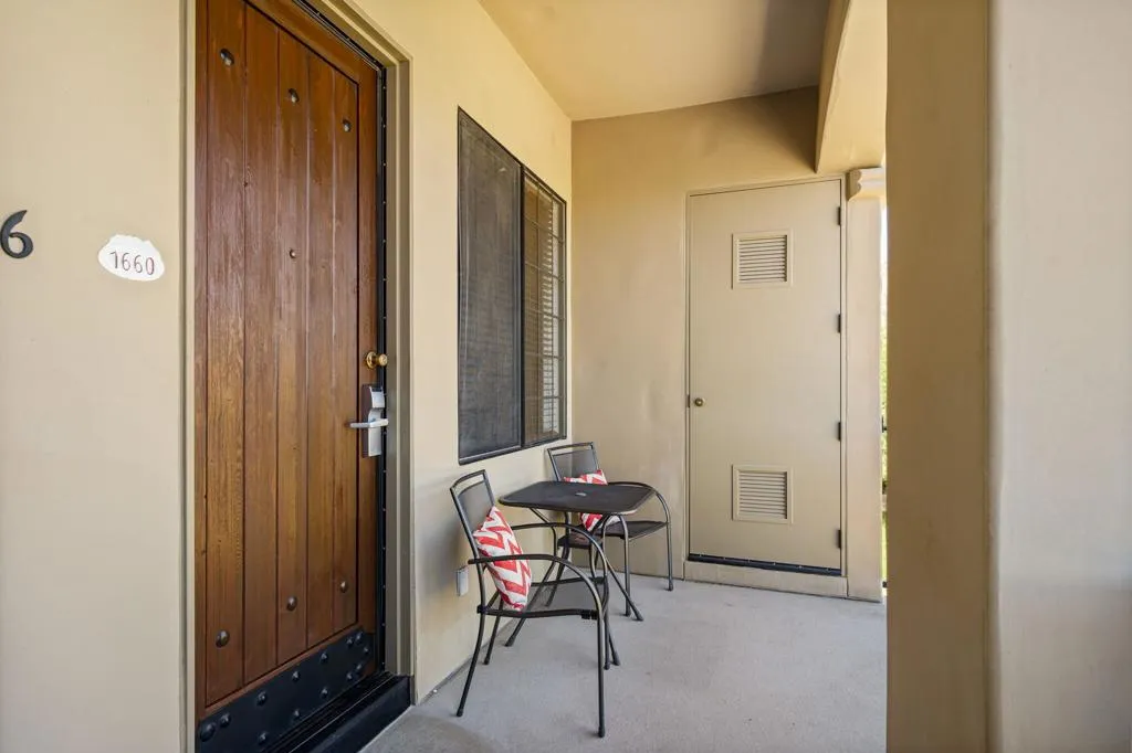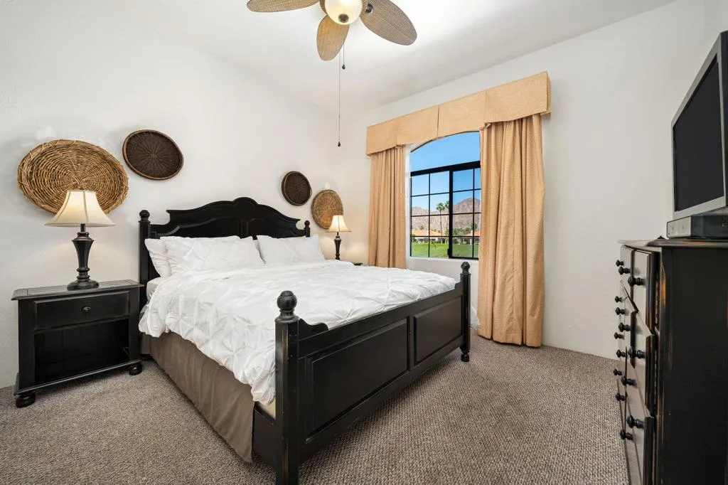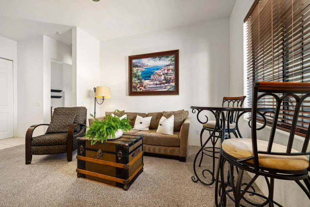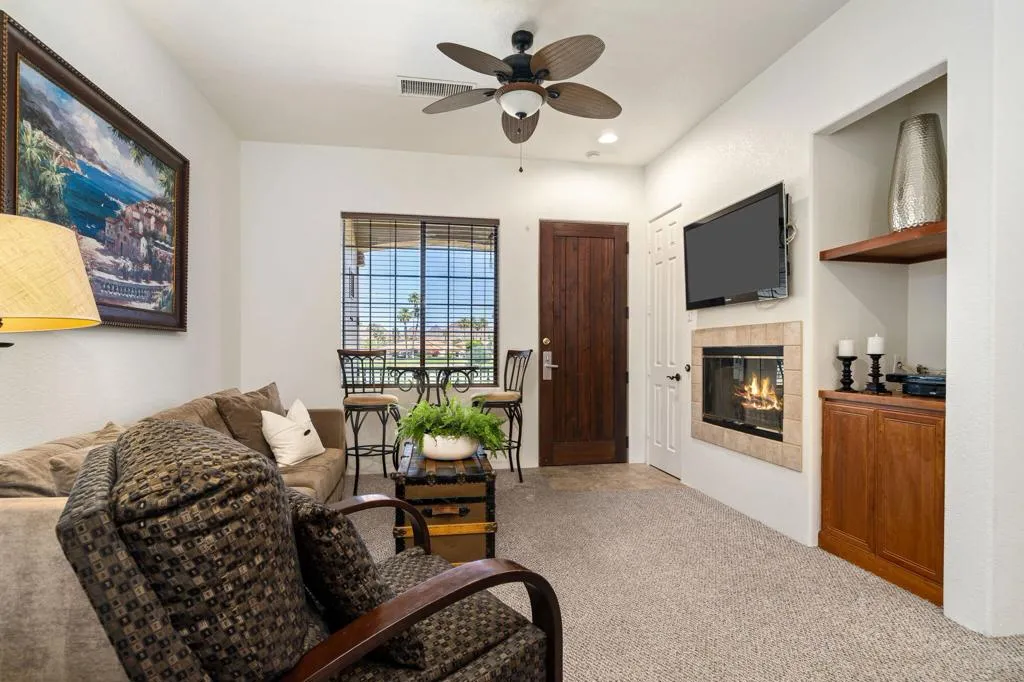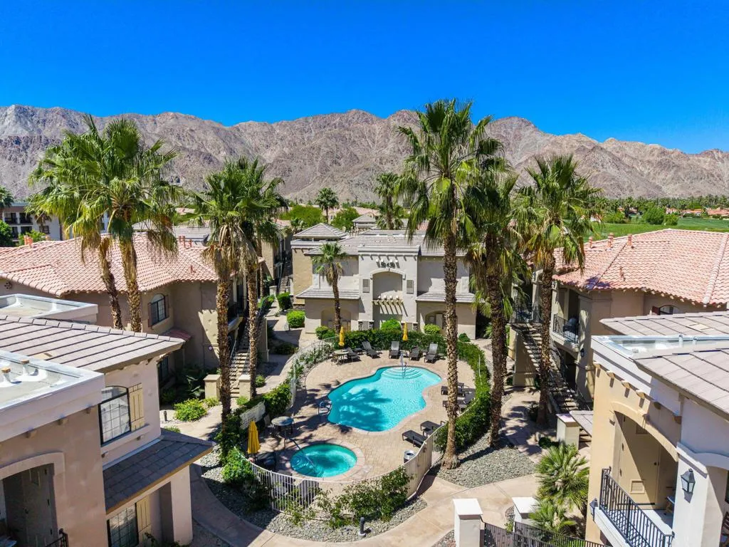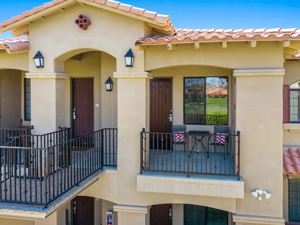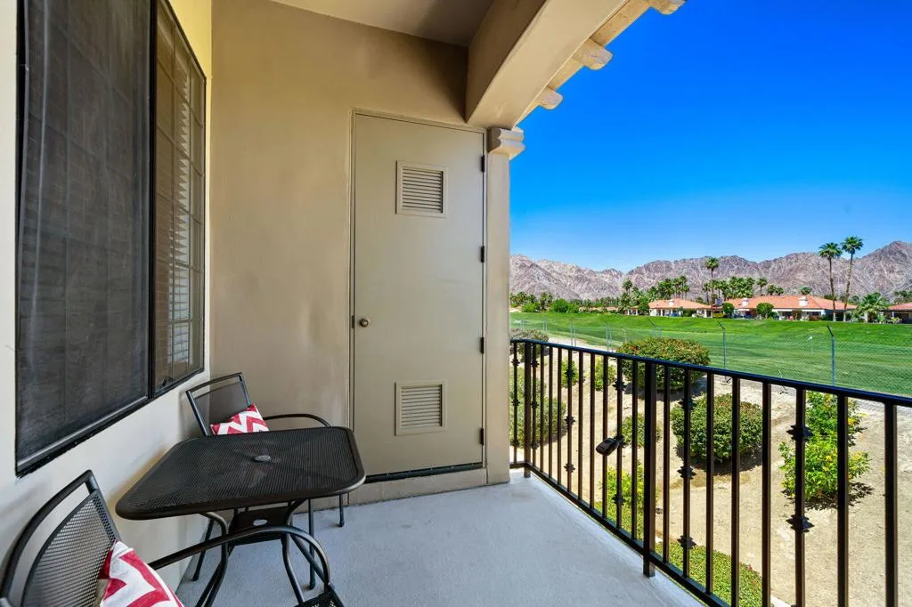 Location, Location, Location! This location doesnt come available often. Great 1031 exchange opportunity. Freshly painted furnished, top-floor 1BD/1BA condo overlooks the Dunes Course at the iconic La Quinta Resort and offers peaceful, private views on the quiet backside of the Embassy Suites. The interior features a comfortable family room, full kitchen, interior laundry, spacious bedroom with closet, and a full bath. Casitas Las Rosas offers low HOA dues and is within the City of La Quinta's Enterprise Zone, providing future short-term rental potential as permits continue to be issued. Prime location close to Old Town La Quinta's restaurants, shops, and amenities, plus easy access to hiking, biking, golf, pickleball, and tennis. Ideal for a 1031 exchange, and the seller is offering another additional condo for sale for an excellent chance to expand your real estate portfolio with two income producing rentals. Ready to experience the La Quinta lifestyle don't miss out on this opportunity.
