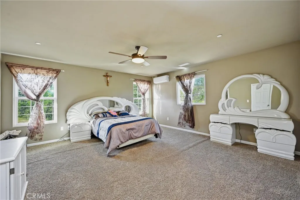 118± acres of Northern California ranch living with refined interior finishes and exceptional infrastructure. This 4-bed, 3.5-bath residence features marble countertops throughout, an open-concept kitchen with center island, bar seating, and generous storage. The family room adjoins the kitchen and includes a wood-burning fireplace and sliding glass doors opening to mountain views. A separate living room provides additional space for daily living. Each bedroom is individually climate-controlled via mini-split systems. The primary suite offers dual sinks and a well-appointed bath. A bonus room above the 4-car garage is suitable for office, guest, or flex use. Property is fully cross-fenced and currently supports approx. 7 cows and 1 bull (born on-site, available to convey). Seasonal pond, natural year-round spring, and miles of drivable trails throughout the acreage. Two high-producing wells (approx. 42 GPM — buyer to verify) with solar-powered irrigation. Owned solar array with battery backup powers the entire property. Additional structures include an older mobile unit used for garden/storage and a dedicated alfalfa barn area. Custom outdoor shower on site. Abundant firewood. RV/boat parking available. Washer and dryer included. Suitable for primary residence, working ranch, multi-generational use, or short-term rental opportunity. Buyer to verify all data including acreage, GPM, and permitted uses with applicable county agencies. $115,000 premium off-grid solar system:• 12.42 kW solar array (36 SolarWorld panels)• 61.2 kWh lithium battery bank (18 Simpliphi modules)• Dual Outback 8 kW inverter-chargers• Four Outback FlexMax 80 controllers• 16 kW Generac propane backup generator• Ground-mounted IronRidge system This system stores over 61 kWh and produces 12.42 kW of solar more than enough to power the entire home comfortably with full off-grid capability.