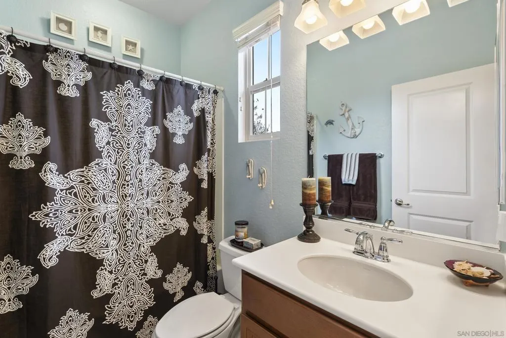 Top-floor end-unit living in the highly desirable Cypress Greens community of Carmel Mountain Ranch. Built by Shea Homes in 2008 and still owned by the original buyer, this 2-bedroom, 2-bath residence is ideally positioned above the garages with no units below and windows on three sides—delivering exceptional privacy, natural light, and a floor plan that lives more like a single-family home. With only three units per building, the setting feels quiet, open, and rarely available. (see suppl) Inside, the home offers thoughtfully upgraded living space with hand-scraped engineered hardwood flooring throughout the main living areas, bedrooms, and kitchen. The kitchen blends style and functionality with quartz countertops, stainless steel appliances, a recently installed quiet-run dishwasher and microwave, and a convenient two-seat eat-at bar. A custom built-in storage and shelving feature enhances the dining area with both character and practicality. The living room is framed by a wall of southeast-facing windows with plantation shutters, filling the space with soft morning light, while the fireplace creates a comfortable place to unwind. The private patio—one of the larger options in the community—offers direct access from both the living room and primary suite, making indoor-outdoor living easy. Additional highlights include a security system, direct-access one-car garage with overhead storage, and a second deeded parking space. Located directly across from the pool, spa, and community gathering areas, with no Mello-Roos, and close proximity to shopping, dining, top-rated schools, and freeway access, this home delivers comfort, privacy, and everyday convenience in a prime San Diego location.