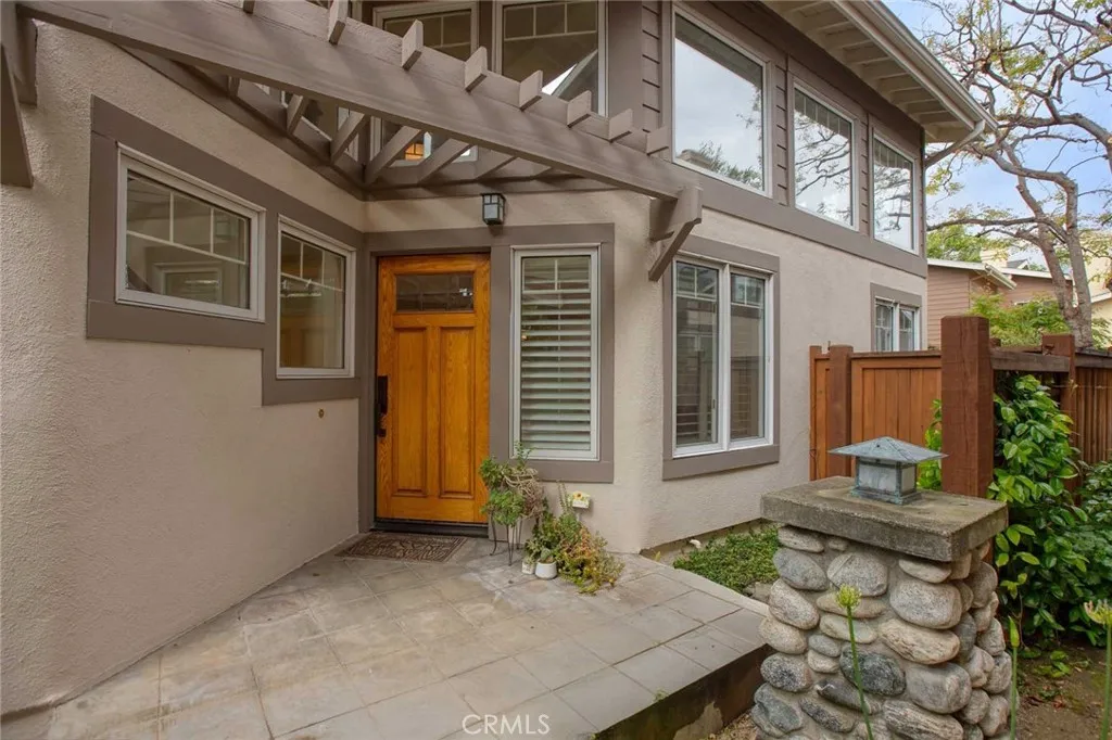 Located in the desirable California Rose Court, this exceptional PUD offers 2 bedrooms plus a versatile loft and 2.5 baths. The spacious living room showcases soaring ceilings, cozy fireplace and lots of windows providing natural light. Professionally designed in the Craftsman style the kitchen features custom cabinets, soapstone countertops, and custom tile backsplash. The kitchen opens to the family room with a convenient built-in desk. Additional features include engineered hardwood floors, and plantation shutters on the lower level, and a sliding glass door from the living room to the newly landscaped backyard. Upstairs, you’ll find two bedrooms plus a versatile loft, a laundry closet, and a full hallway bath. The spacious primary suite offers, a walk-in cedar lined closet, private balcony, and an updated en-suite bath with quartz countertops. The full bathroom in the hallway is also updated with quartz countertops and shower in tub. Additional highlights include a 2-car attached garage with built-in storage racks, shelving, and a utility sink. HOA includes a pool, spa and greenbelt. Property is in a prime location close to shopping and transportation.