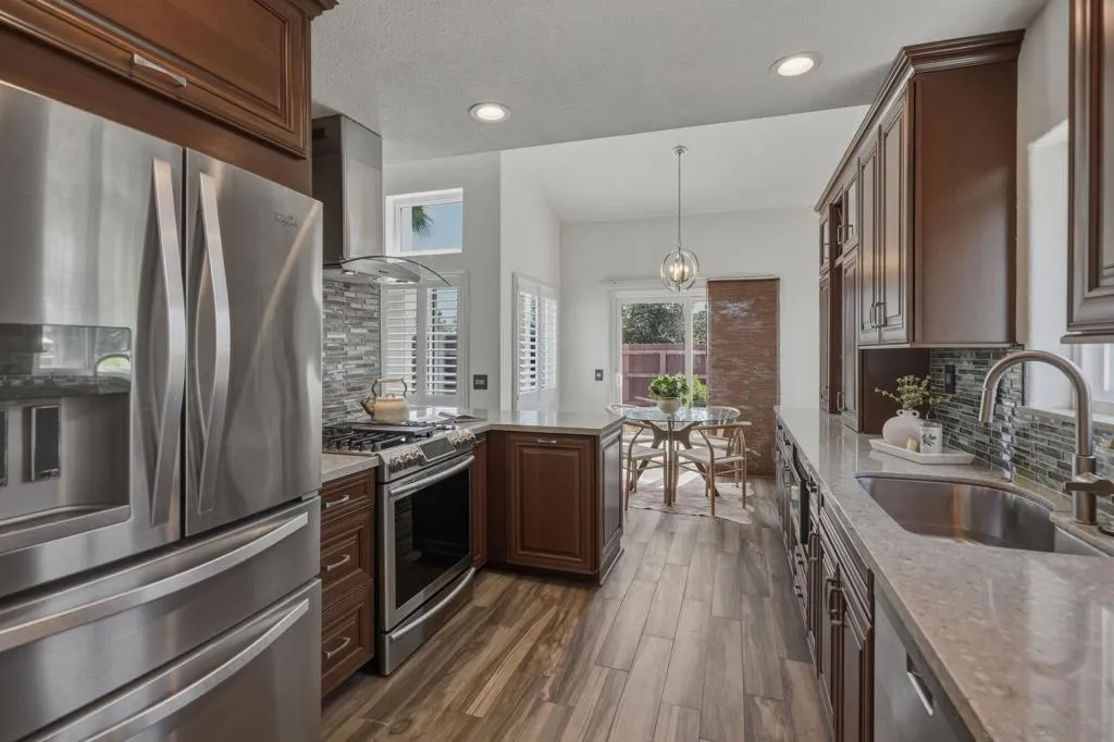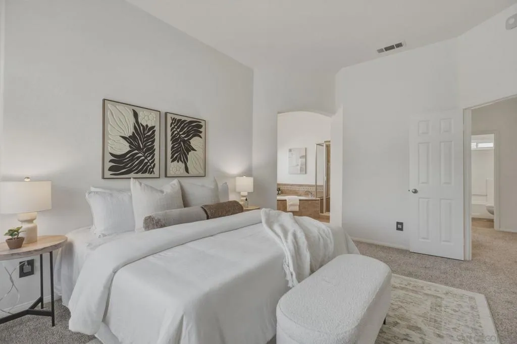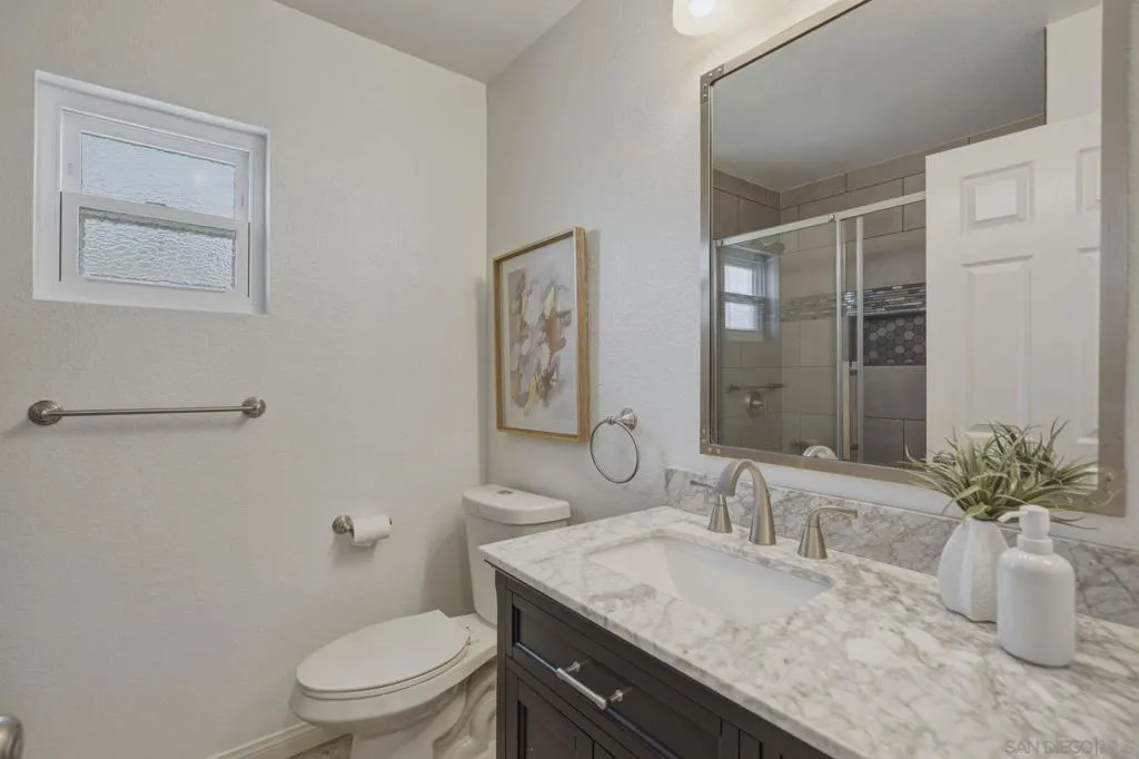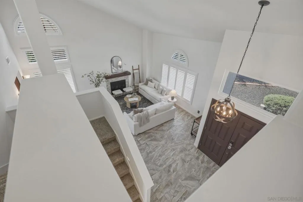 Welcome to this thoughtfully designed 4BR/3BA gem, nestled on a peaceful cul-de-sac. From the moment you arrive, you'll appreciate the lush landscaping, ample parking, including space for an RV, and the home's freshly painted exterior. Inside, every detail has been meticulously crafted for style and functionality. Freshly painted inside as well, the home has new carpet upstairs, elegant interior shutters on every window, and matching outlets and switches for a polished, cohesive look. The first floor has brand-new tile flooring, a remodeled kitchen, a refreshed bathroom, and a charming fireplace for cozy evenings. Head out to your designer backyard for relaxation and entertainment. Enjoy lush landscaping on drip irrigation, new concrete pads, a direct gas fire pit, a dedicated dog run, and durable composite plank fencing, all designed for beauty and low maintenance. Energy efficiency is key, and with 23 fully owned solar panels, you can turn the A/C on high AND love getting your SDG&E bill each month. Plus you also have a whole-house water filtration and softener system! With its perfect blend of thoughtful upgrades and its prime location, this move-in-ready home truly has it all. Don't wait - your dream home is here!
