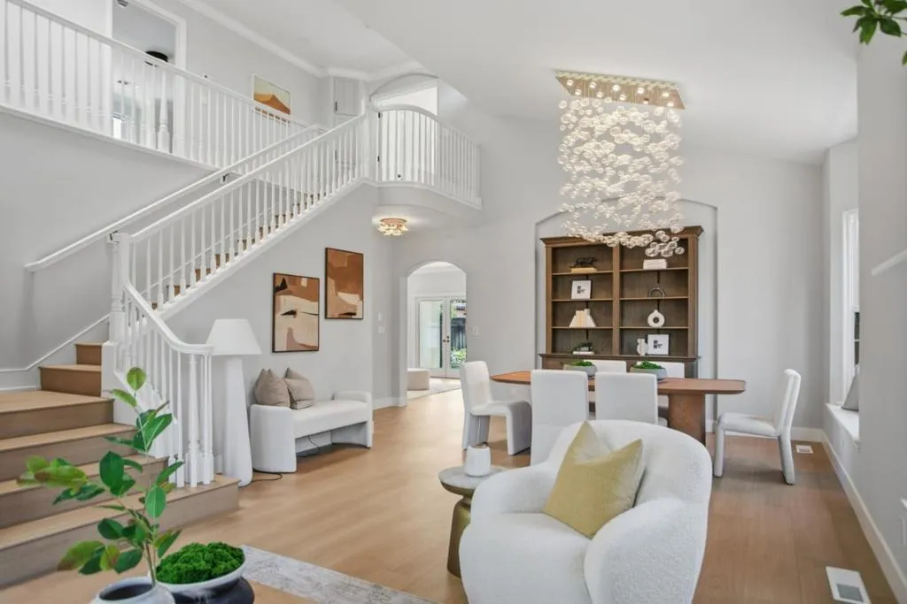 Nestled on a picturesque, tree-lined street, this masterfully redesigned residence offers the perfect blend of elegance and modern efficiency. From the moment you cross the threshold through the Mahogany double doors, youll notice a home designed with meticulous attention to detail. The expansive 2,376 sq. ft. layout features brand-new flooring and fresh designer paint, illuminated by a bespoke interior lighting package. The open-concept living and dining areas flow effortlessly, creating an ideal space for both intimate family evenings and grand entertaining.