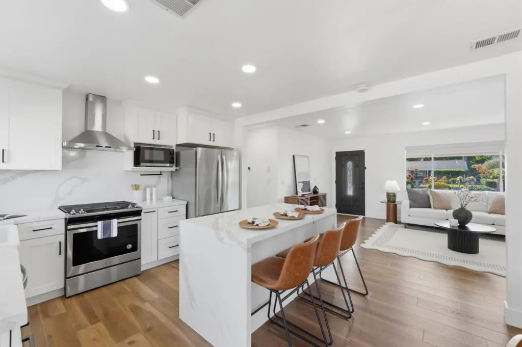 Fully remodeled and move-in ready, this single-story home delivers modern style, smart upgrades, and everyday convenience in a prime South San Jose location. Reimagined in 2020 with a true open-concept layout, it features a sleek updated kitchen, refreshed bathroom, new flooring throughout, and abundant natural light, ideal for todays modern living. Major upgrades include newer AC (2022), water heater (2023), roof approximately six years old, and a new electrical panel, providing long-term value and peace of mind. The home also includes a solar system and water softener, offering enhanced energy efficiency and cost savings. The spacious, low-maintenance backyard with slight open views is designed for both entertaining and relaxation, complete with ambient outdoor evening lighting, perfect for gatherings, outdoor dining, or unwinding at the end of the day. Ideally located near Capitol Expressway, Highway 101, and Highway 87 for an easy commute, with close proximity to Hellyer Park, Hayes Mansion, shopping, dining, and local schools.