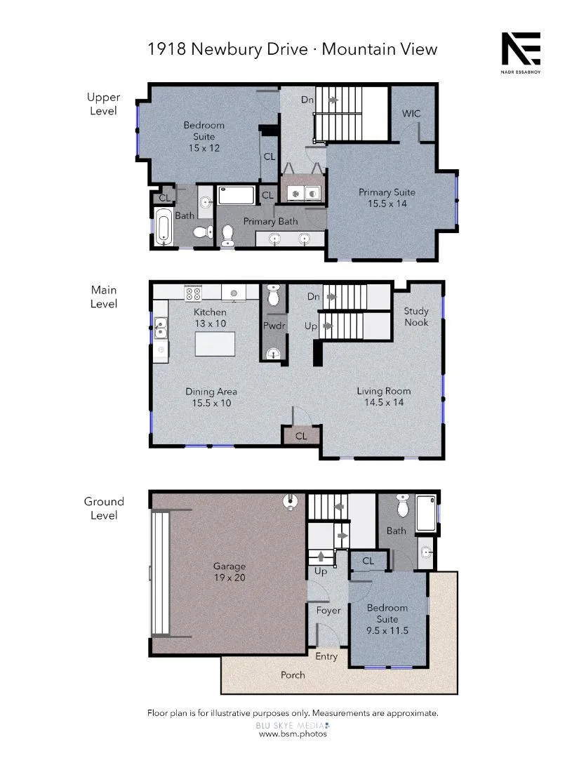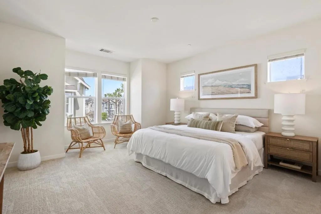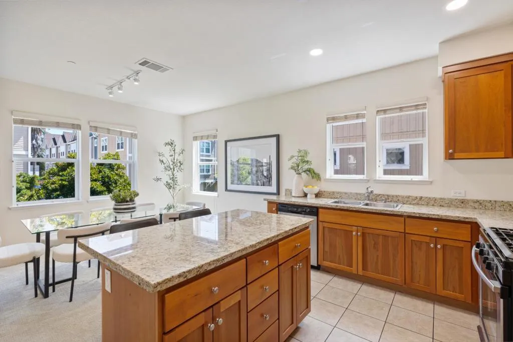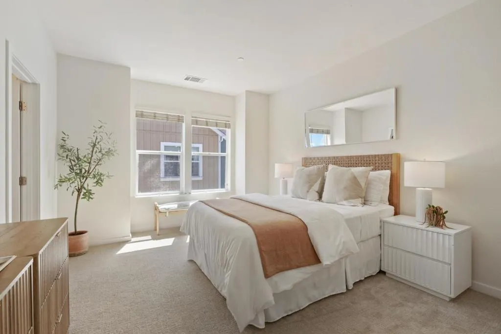 Sunlit end-unit townhome in the heart of Silicon Valley. This beautifully designed 3 bedroom, 3.5 bathroom home offers a flexible and convenient layout ideal for modern living. The first floor features a versatile private bedroom suite, ideal for guests or a home office. The second level showcases an open-concept living space with a spacious living room, dining area, and a well-appointed kitchen with center island, along with a convenient half bath. Upstairs, the primary suite includes a walk-in closet, accompanied by an additional en-suite bedroom. Enjoy abundant natural light throughout, in-unit laundry, an attached 2-car garage, A/C ready, and the added privacy of an end unit. Ideally located just minutes from downtown Mountain View dining and shopping, with easy access to major commute routes. Two blocks to a bike bridge connecting to Google, Permanente Creek Trail, and Shoreline for outdoor recreation. A perfect blend of comfort, convenience, and location. Buyer's to verify schools
