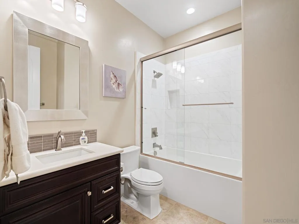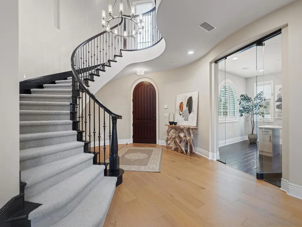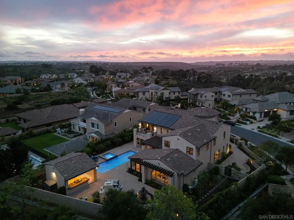 Exceptional gated estate in Alta Del Mar. Recently remodeled, featuring wide plank oak flooring, new designer wool carpets, refined gourmet chef’s kitchen, expansive interiors, soaring ceilings, and a seamless indoor-outdoor flow Thoughtfully designed floor plan: generous living spaces filled w/ natural light, main level ensuite BR w/outside access, provides comfort & flexibility. Primary suite is complete w/ spa-inspired bath & serene views of the surrounding landscape. Resort-style backyard w/ spacious lounging areas, lush landscaping, a sparkling pool/spa and a wonderful outdoor kitchen/pool cabana. Located near top-rated schools, dining, shopping, & coastal access, this residence offers a refined balance of luxury, comfort, and convenience! Exceptional energy efficient residence has photovoltaic solar. tankless water heaters, & motion sensored lighting. The grand, gated-courtyard entry, sets the tone for the interiors within. Designer inspired gourmet kitchen is both functional and beautifully appointed, featuring top-tier appliances fixtures, lighting and hardware, extensive cabinetry, and an oversized Taj Mahal quantize island that serves as the heart of the home. It opens seamlessly to the family room, perfect for everyday living & entertaining. Primary suite offers a private sanctuary w/ a balcony overlooking the backyard and a well-appointed bath featuring dual vanities, large soaking tub, large shower and spacious walk-in closet. Also a ground level, office, and a 2nd level bonus room (that could be a 6th BR), complete this a very flexible floorplan. Outdoors, the living space lends well for both relaxation and entertaining, featuring a covered terrace, outdoor fireplace, cabana, pool/spa, multiple seating areas & fountains, and mature landscaping. Additional highlights: Oversized laundry room w/a multi-access point laundry chute, abundant garage storage, and plenty of natural light!