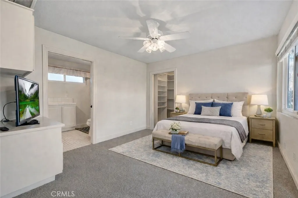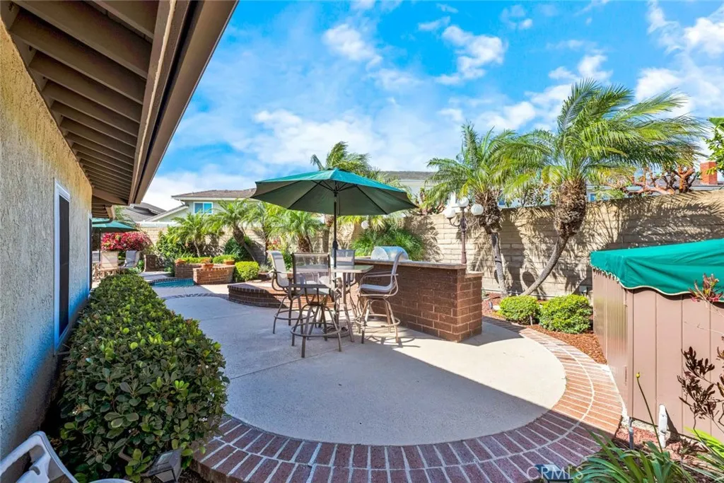 This is your opportunity! A cul-de-sac home on a large 8,400 sq. ft. lot, offering a spacious single-level floor plan. Rarely are there one story homes with 5 bedrooms and 3½ bathrooms! A BIG plus to this home is a private junior ADU or in-law quarters! Located in Devonwood, one of Fountain Valley’s most desirable neighborhoods. Double doors welcome you into the home, where you’ll find a formal living room with a vaulted ceiling. The home also has an expansive family room featuring a vaulted ceiling with exposed beams and multiple skylights, filling the room with natural light. It also features custom built-in cabinetry and a fireplace. The kitchen is generously sized with plenty of cabinets with pull out drawers. It is equipped with a newer stainless steel refrigerator, oven and microwave, trash compactor & gas Viking cooktop The home also has an expanded & spacious dining room. The primary suite has a slider that opens to the patio. It offers easy-maintenance laminate flooring and an ensuite bathroom with dual sinks and a walk-in shower. Two additional bedrooms share a spacious bathroom with dual vanities & a tub/shower combination. On the opposite side of the home: The private junior ADU or in-law quarters includes its own separate entrance, walk-in closet, mini refrigerator, ensuite bathroom with shower, and its own water heater—ideal for extended family or guests. The ADU, kitchen, family room, and primary suite all enjoy views of the backyard and patios. The backyard is designed for entertaining, featuring multiple patio areas, planters, a bubbling spa, gas fire pit, and a built-in barbecue area with a 2-burner cooktop and refrigerator. Additional highlights include newer a/c, dual pane sliders and windows that feature retractable screens for unobstructed views when closed. There are fireplaces in both the living and family rooms, an indoor laundry room, and a 3-car garage. The roof was replaced approximately 2 years ago. This home has been well maintained over the years & offers a fantastic opportunity to update and customize to your own style. A highly sought-after location--Fountain Valley is a GREAT Place to live, known for its Award-Winning Schools and is centrally located. Mile Square Park is close by, with sports parks, parks & picnic areas and golf course. It is Beach Close--a mere 4.3 miles to putting your toes in the sand and water. It has easy freeway access to the 405 and close to all that Orange County has to Offer!
