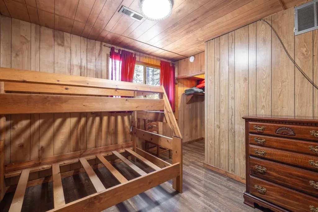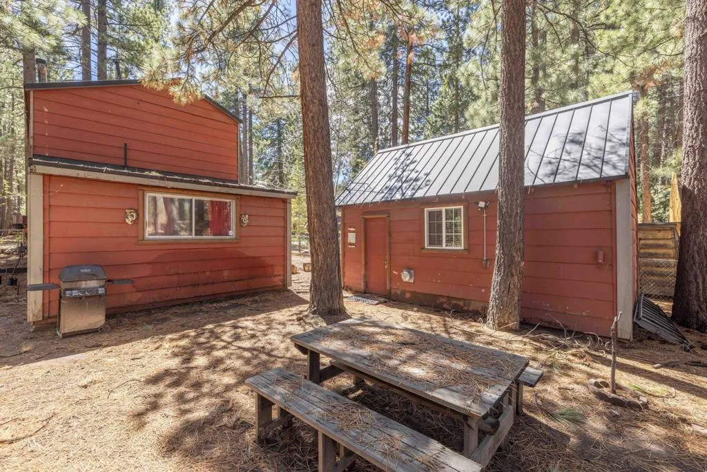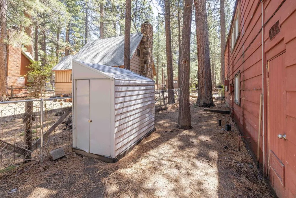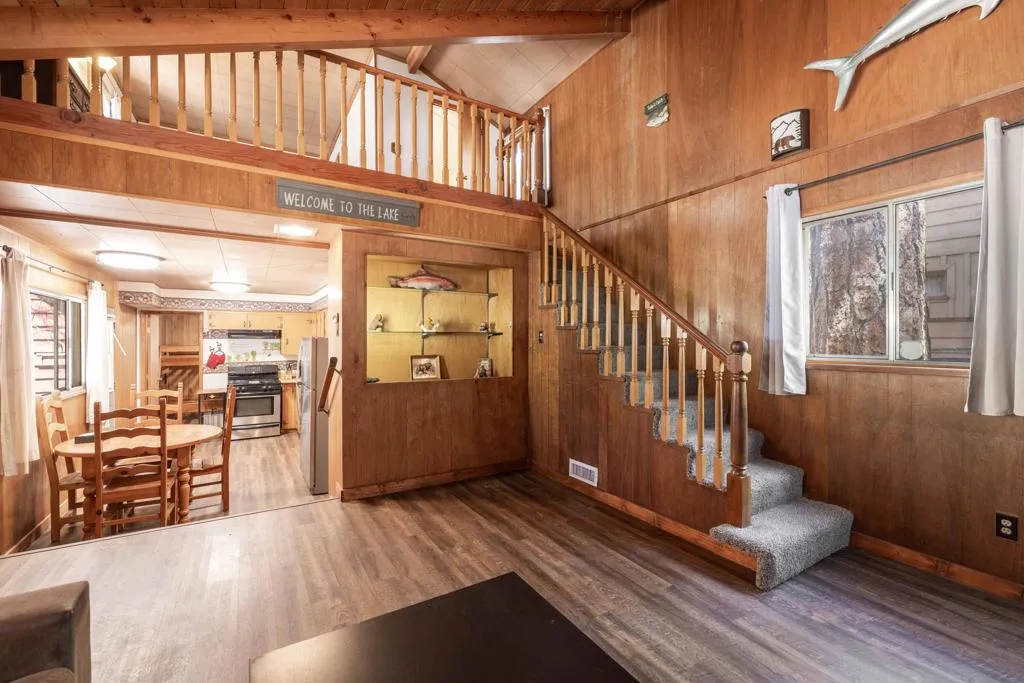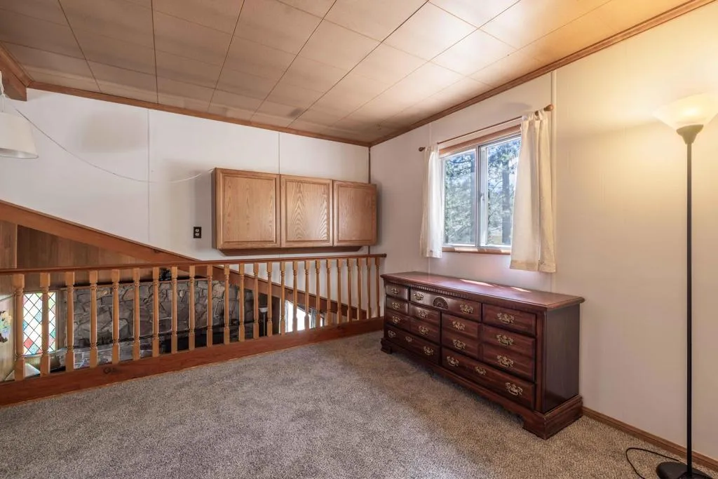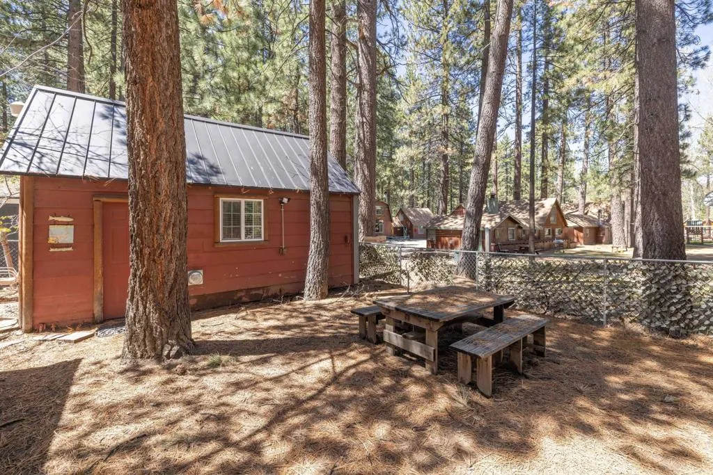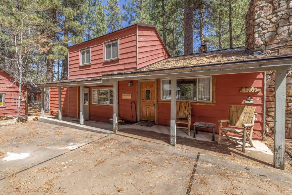 You'll love the alpine ambiance this authentic mountain cabin delivers. Vaulted wood-beamed ceilings with gorgeous native-rock fireplace in the living area. Spacious loft bedroom with half-bath upstairs. Additional bedroom and full bath downstairs. Covered front porch, metal roof, fenced lot with great parking, central heat, laundry, dual pane windows AND a detached game room! Which could easily be converted into an office, studio or additional sleeping area if preferred. Excellent location, close to great hiking, Boulder Bay Park, the lake and all the year-round fun that Big Bear offers.