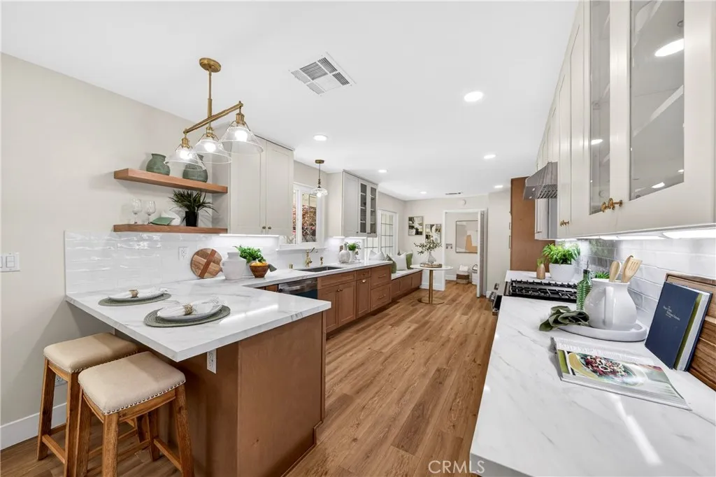 Fall in love with this beautifully remodeled residence in a quiet and desirable neighborhood in La Mirada*** Meticulously designed with attention to every detail, this home reflects both style and functionality***The interior features all-new paint with an elegant smooth finish, complemented by a beautifully designed, bright and airy kitchen overlooking a charming garden, complete with new appliances and cabinetry***A conveniently situated laundry room is located next to the kitchen, enhancing everyday functionality***The home also offers a versatile family room with a new vaulted ceiling, ideal for use as a home office or formal dining area, all overlooking the garden*** All bathrooms have been newly redesigned with a refined European-inspired concept, while all bedrooms are generously sized, providing comfort and flexibility for a variety of living needs***A newly installed skylight at the entry with a solar-powered built-in blind fills the home with abundant natural light, creating a bright and welcoming ambiance***The home is further enhanced with new recessed lighting and stylish pendant fixtures throughout***Outside, the home features fresh exterior paint and a brand-new roof, along with a newly constructed retaining wall in the backyard, adding both curb appeal and functionality***Conveniently located near parks within walking distance, a nearby golf course, and local schools***Don’t miss out this exceptional opportunity to own a fully upgraded, move-in ready home in one of the area’s most desirable neighborhoods.