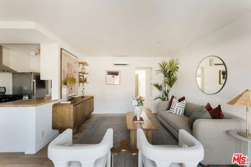 Tucked into a stylish mid-century modern building in the heart of Echo Park, this 1BD/1BA residence offers the kind of city living that's equal parts design and ease, where your mornings start with peek-a-boo city views and your afternoons end lounging poolside. White oak floors and a beautifully appointed kitchen set a warm, inviting tone, featuring butcher block counters, open shelving, brass hardware, and crisp white micro tile backsplashes. No detail was overlooked. The generously sized bedroom offers ample closet space with double closets and floor-to-ceiling built-in shelving, while the bath features a deep soaking tub and patterned tile floors. Outside, a gated entry welcomes you home and the magical pool area delivers serious Palm Springs vibes, bordered by white brick, redwood lounge decks, and lush landscaping. Practical conveniences round out the package: mini-split AC, in-unit laundry, and off-street parking with dedicated storage. Located just a few blocks from Sunset Boulevard, you'll have Echo Park favorites like Levant Bakery, Canyon Coffee, Bacetti, and Bar Flores practically at your doorstep. A rare combination of location, design, and comfort, this is Echo Park living at its best.