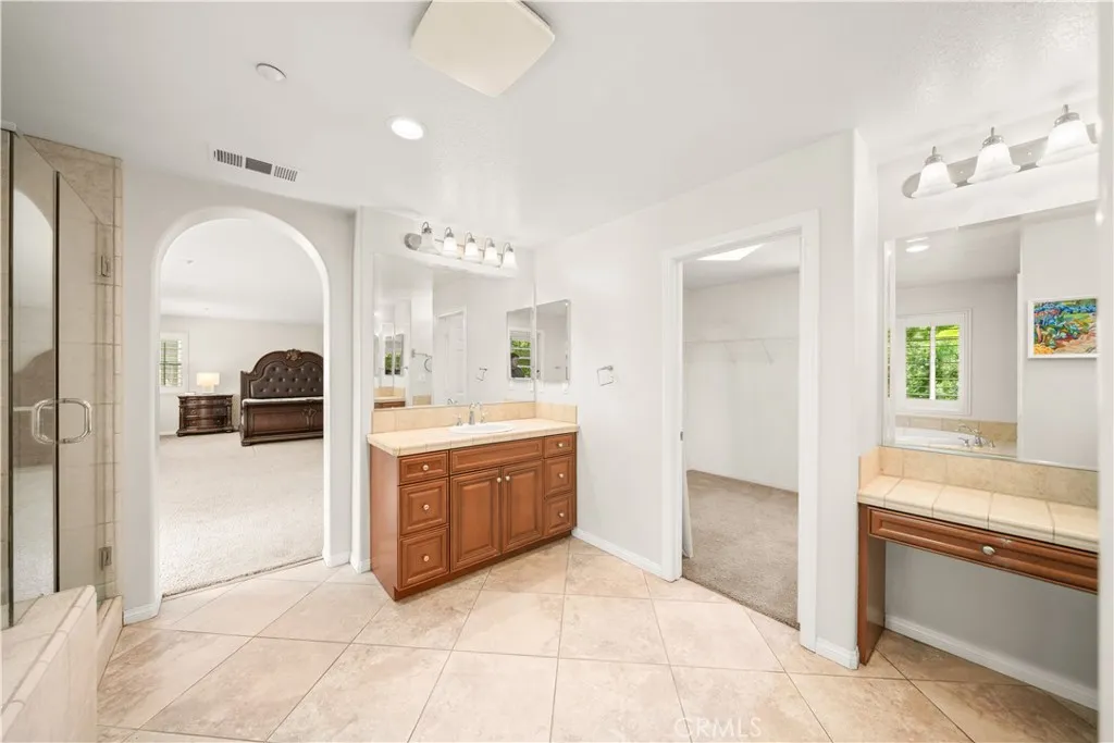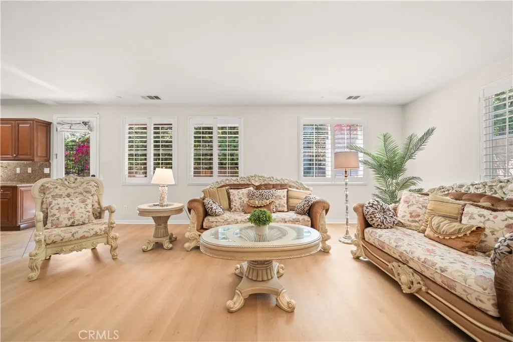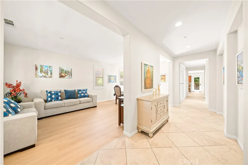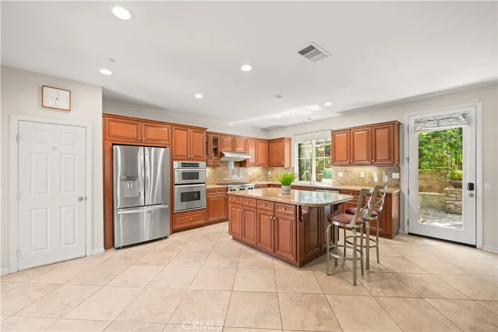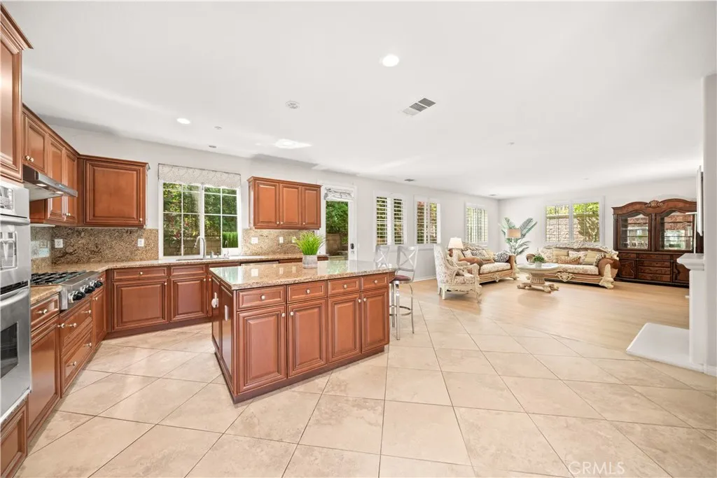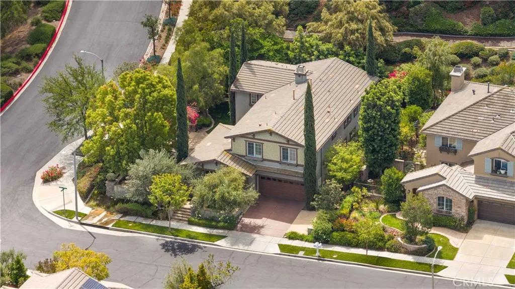 This beautiful upgraded and well maintained home in the gated Ridgegate community of Chino Hills, this well-designed 4-bedroom, 4.5-bath home offers 3,412 sqft of living space on a premium 8,729 sqft corner lot. Upon entry, you are welcomed by a spacious living room and formal dining area, creating an open and inviting setting for gatherings. The family room with fireplace and media center. The gourmet kitchen with center island, granite counter tops, walk-in pantry, KitchenAid stainless-steel appliances, including 6-burner cooktop, built-in microwave, oven and dishwasher. The main level features a private bedroom suite, ideal for guests or multi-generational living. Upstairs with a large versatile loft providing additional living space, perfect for a secondary family area, office, playroom or can be easily converted to the 5th bedroom. The large primary suite offers a comfortable retreat area filled with natural light, a private balcony and a large walk-in closet. Primary bathroom with dual sinks, bathtub and separate shower with frameless glass enclosures. Two additional en-suite bedrooms are thoughtfully arranged for privacy and convenience. Other notable features including new vinyl flooring in living room, family room and downstairs bedroom, wood shutters, custom two-tone paint, upstairs laundry with sink. Professionally landscaped gardens, the lovely courtyard is a good connection of indoor-outdoor flow and flexibility for entertaining. The large back yard and side yard—enhanced by the corner lot positioning—adds valuable outdoor space rarely found in the community. In the prestigious gated Ridgegate community, excellent Chino Hills schools.