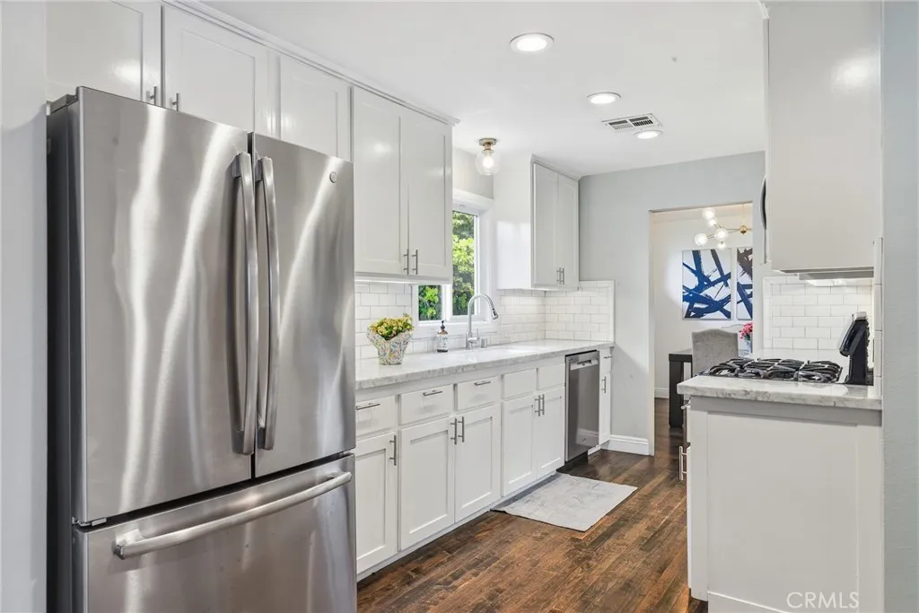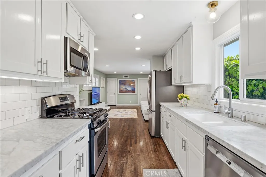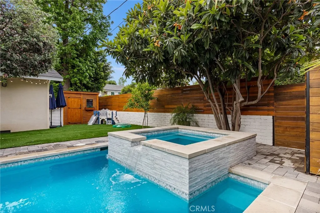 Turn-key Sherman Oaks Pool Home with NEW Primary Suite + Paid Off/Owned Solar. 4 bedrooms/3 full baths and approximately 1771 sq feet of living space. Extensively upgraded single-story home featuring a permitted 265 sq ft primary suite addition (2023) and a true indoor-outdoor California lifestyle. The bright, open layout offers wood flooring, recessed lighting, a decorative fireplace-centered living room, and a remodeled kitchen with Carrera marble countertops, subway tile backsplash, soft-close cabinetry, and stainless steel appliances—all flowing into a flexible family room/den. The new primary suite is a standout with a custom walk-in closet, all new bathroom, dedicated mini-split HVAC, and French doors opening to a private composite deck overlooking the backyard. Three additional bedrooms are all generously sized, including a junior suite with it's own en-suite full bath. Resort-style backyard was completed in 2021 and includes a gas-heated saltwater POOL + SPA with Baja shelf, waterfall, LED lighting, and full app control, surrounded by pavers, new evergreen turf, and multiple entertaining areas. Mature fruit trees and updated fencing add privacy and charm. Major system upgrades: paid-off solar (app monitored), Navien tankless water heater w/ recirculation, new electrical panel (2023), newer HVAC, updated plumbing, custom closets, energy-efficient windows, and more. Fantastic residential neighborhood. Prime south of Chandler location just minutes from Ventura Blvd, award winning schools, houses of worship, shopping, dining, and everyday conveniences. Fully upgraded, move-in ready, and positioned to generate strong interest—opportunities like this don’t last.