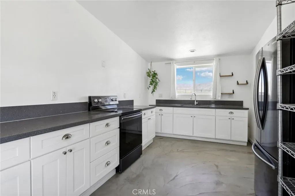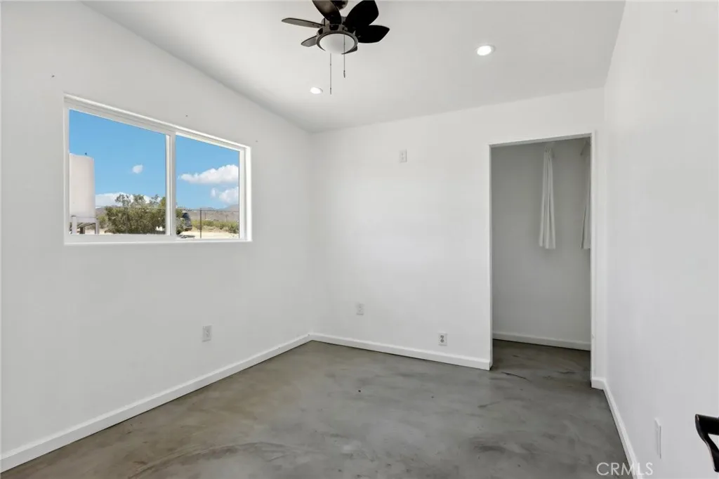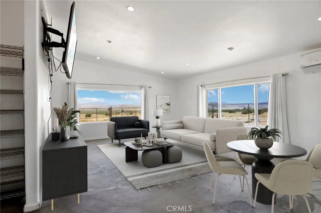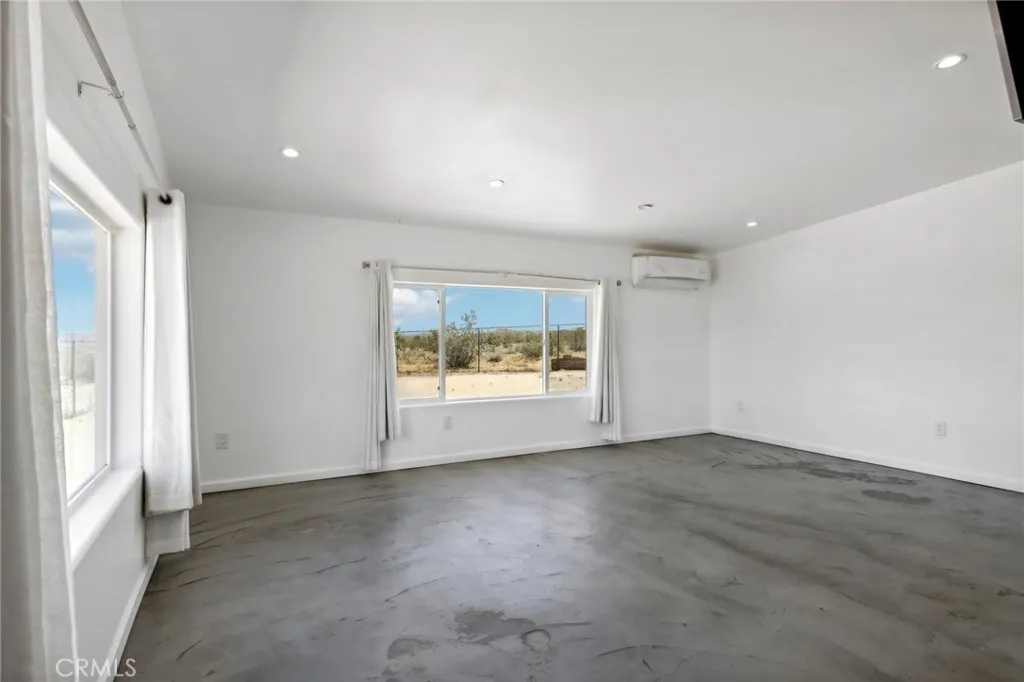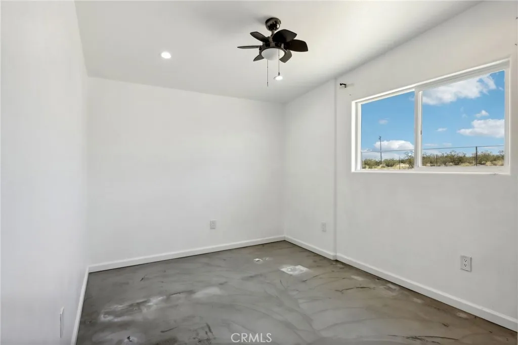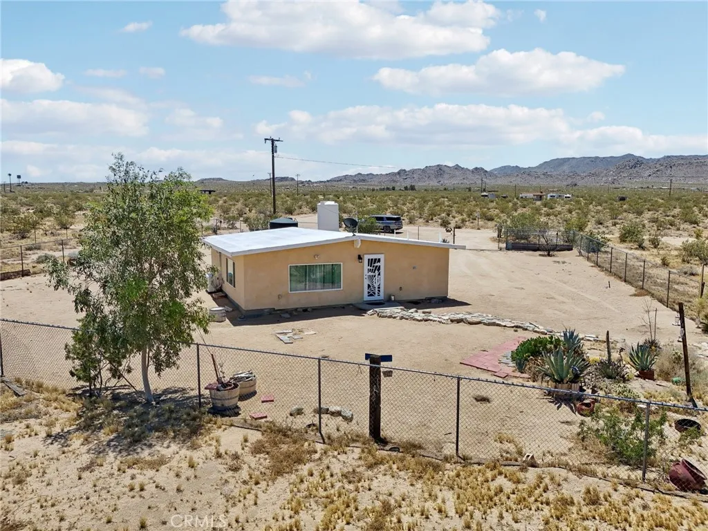 Discover your dream home or investment gem with this charming cabin turned residence. Nestled in desirable Johnson Valley area, this property promises comfort and modern living. Step inside to an inviting open-concept interior finished in crisp white tones, highlighted by stylish canister lighting and durable concrete flooring. Abundant natural light pours in through expansive picture windows, creating a vibrant atmosphere perfect for relaxation or entertaining. The kitchen greets you with simple cabinets, gleaming countertops, and great views. Two serene bedrooms provide a peaceful escape, each equipped with ceiling fans and generous storage. A refreshing shared bathroom features a step-in shower, conveniently accommodating both guests and residents. Additional features are a mini dual heat & air system and RV 3 electric hook-ups. With shopping, dining, Big Bear, Palm Springs, the Airport and Johua National Tree close by, why wait? Not to mention the annual Hammer Race. Outside, enjoy a gated yard with ample space for outdoor activities and gatherings- imagine making s'mores under the stars! Additional features enhance this property's appeal making it must-see. Don't miss out on this opportunity to own a piece of paradise in Johnson Valley.