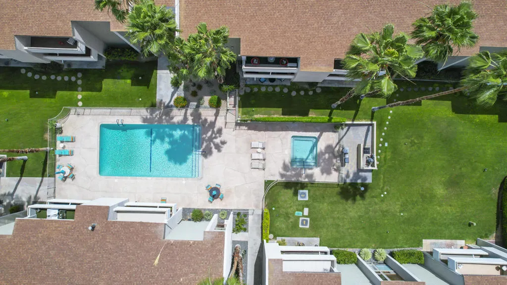 Absolutely, the most beautifully updated home in Casa Canyon. This home has NO Land Lease fees and is located in the BEST area in Palm Springs. Designed by renowned architect, William Cody, with a spacious living area and primary bedroom suite that has been upgraded with automatic blinds, ceiling fans, recessed lighting and new double paned windows. A beautifully handcrafted security screen on the front door adds fresh air and privacy and to the indoor/outdoor living that we so adore. Extra light and airy due to vaulted ceilings, this TOP floor, END UNIT, offers the privacy and quiet living you would like. Beautifully tiled flooring throughout the entire home, with mountain views from almost every window. A new sliding glass door from your bedroom to the balcony is the perfect spot to enjoy morning coffee with full mountain views. Walk in Closet AND an extra closet in the Primary suite for all your special things. An additional storage closet is located off the balcony. The second bedroom is located on the opposite side of the home which is always desirable when noisy guests come for a visit. The kitchen has an open feel with beautifully handcrafted cabinets that have been designed and built by a local craftsman specially for this kitchen. A water filtration system has been added to ensure you have the best water possible. All appliances are very new and include a built-in wine and beverage cooler, refrigerator, microwave, stove and oven. Many, many other special touches have been added to make this home very special.Casa Canyon, designed by renowned Mid Century architect William Cody, offers 3 swimming pools, 3 spas, library and meeting room and meticulously manicured landscaping. Parking is available in your deeded, covered and shaded carport close to your home. Choose either an elevator or a stairway to bring you to the third floor. This location is close to Indian Canyons hiking trails, Smoke Tree Village, Indian Canyons Golf Resort and a 5 minute car ride to downtown Palm Springs.Truly a great home in South Palm Springs!