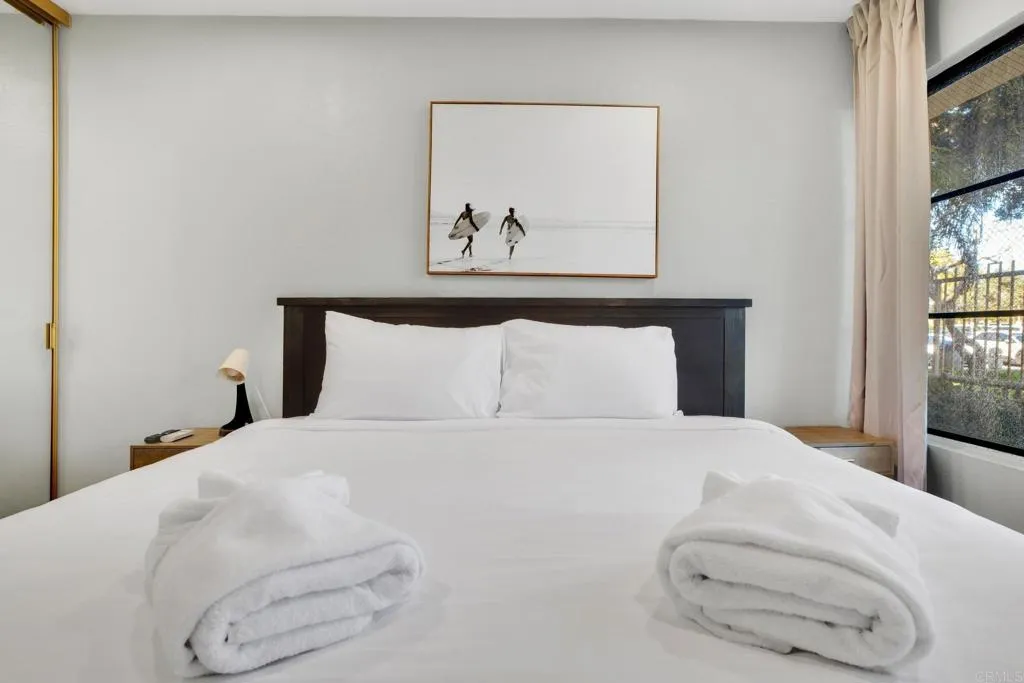 Experience the ultimate coastal lifestyle with this stunning bayfront condo in the heart of Pacific Beach! Located just six blocks from the ocean and a short stroll from the vibrant restaurants, bars, and shops of Pacific Beach, this recently upgraded two-level condo offers the perfect blend of relaxation and convenience. Short-term rentals are allowed, making this an incredible opportunity for those seeking a waterfront condo, vacation home, or lucrative investment property. Enjoy peek-a-boo bay views from the patio off the light-filled living room, where large sliding doors invite in the coastal breeze. The lower level features a modern kitchen, dining area, and two spacious bedrooms with views of Fanuel Street Park. The condo also includes an in-unit washer and dryer, with additional community machines available. Step outside and immerse yourself in the beauty of Sail Bay, where pedestrian and bike paths, kayakers, paddleboarders, swimmers, beach volleyball courts, a grassy park, and sandy beaches await right at your doorstep. This 26 unit bayfront complex offers fantastic amenities, including a gated underground garage with a designated parking space and storage, a secure entry call box, paddle and surfboard storage, and a large hot tub overlooking the bay. Priced to sell in one of San Diego’s most desirable locations. Open House Sunday 4/19 from 2:00–4:00 PM.