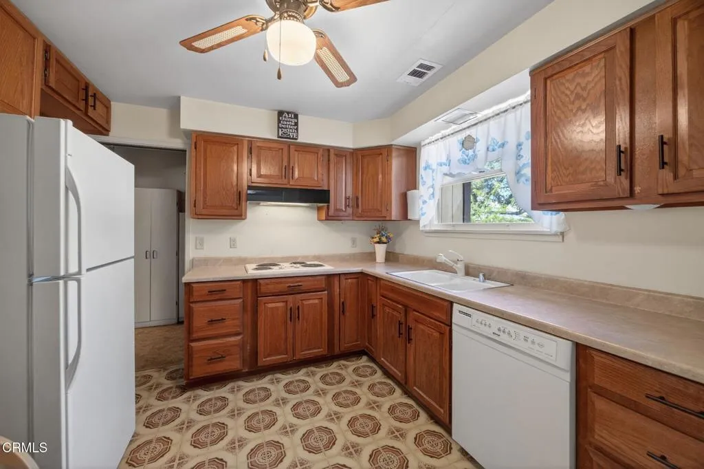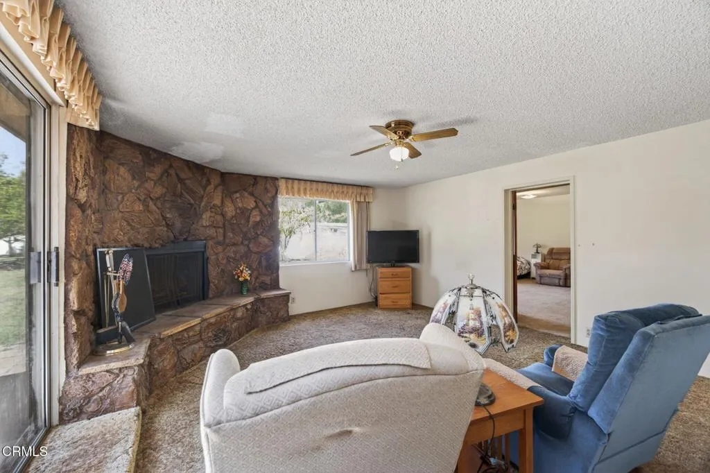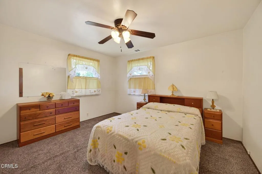 The Oaks is a peaceful, family-friendly neighborhood in Santa Paula, CA. known for its well-maintained homes, lush greenery, mature Oak Trees, many birds including Peacocks and a close-knit, family oriented small town community; it is truly a charming place to live. This is a once in a lifetime opportunity to buy a single owner home, never before on the market, in the unique and quaint Oaks Neighborhood. There is a mini-island out front, in the middle of the street, for children to play; it creates a park setting for a walk to meet your neighbors. This home has fantastic curb appeal, mature landscaping, many Oak Trees, a circular driveway for easy parking, potential for R.V. parking and a double wide carport for covered parking, a very spacious and flat back yard with fruit trees and lots of room for entertaining or a future A.D.U. In addition to the 3 bedrooms and two baths, this family home includes a living room, a family room with wood burning fireplace, a dining room with original wood flooring, and a very large bonus or recreation room big enough for a pool table. The large primary bedroom can be used as separate guest quarters with separate exterior entry and private bathroom, the kitchen includes appliances, with ample cabinet and counter space, and is adjacent to a separate laundry area with washer, dryer and an upright freezer. Some of the newer updates include: a central heating and air conditioning unit with all new ducting, a new roof (tear off and replaced four years ago), and a new water heater installed four years ago. From the moment you see this property you will know it is special and has been well cared for and loved throughout the years. Once you enter the home you will be filled with 1950's vintage charm. Don't miss out on this fine home. In close proximity to Downtown Santa Paula and just a short commute to Ventura or Santa Barbara to the West or Los Angeles to the East.