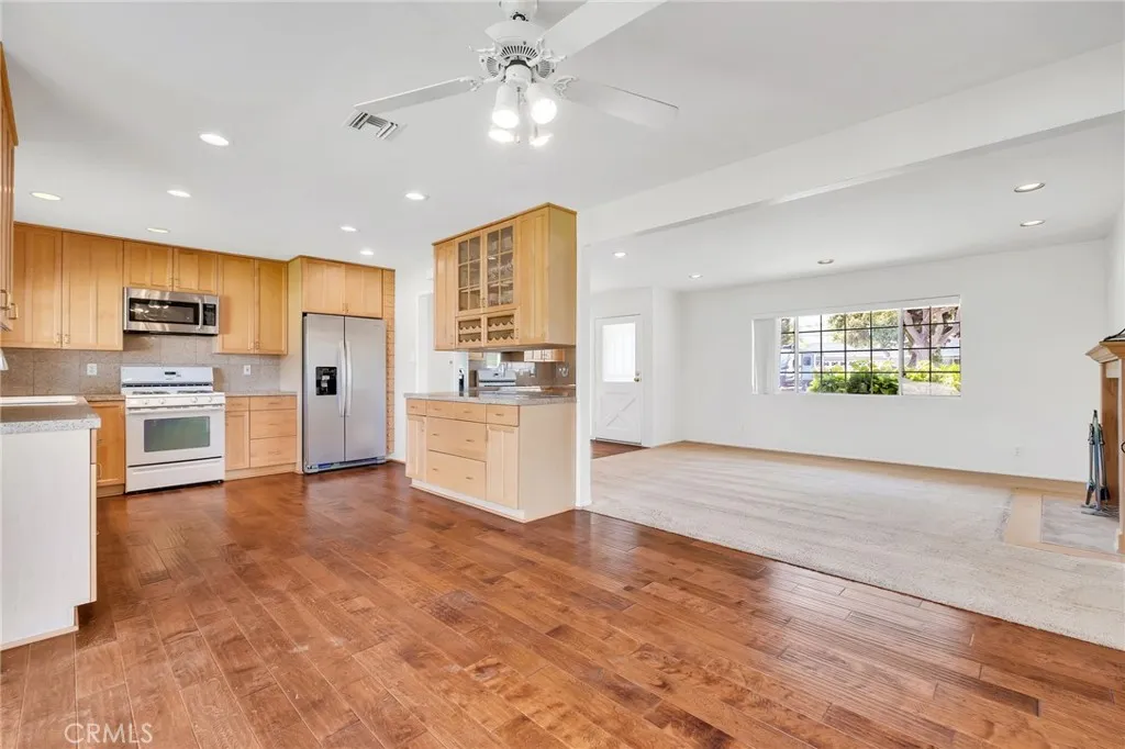 Experience the perfect blend of comfort, charm, and opportunity in this inviting single-story home set on an expansive 8,000+ sq ft lot in a desirable Simi Valley neighborhood. This beautifully maintained 3BD/2BA residence offers 1,200+ sq ft of light-filled living space with fresh interior paint and excellent potential to update or customize. Bathed in natural light, the home features a warm, welcoming interior with a clean, well-cared-for feel throughout. Strong curb appeal is highlighted by drought-tolerant landscaping and an extended driveway with possible RV parking. The private backyard is a true retreat, showcasing mature fruit trees, rose bushes, and built-in planters, with ample space for a pool, ADU, or future expansion. Designed for seamless indoor-outdoor living, the home features sliding glass doors from both the primary bedroom and the dining/kitchen area—ideal for entertaining and everyday living. Additional highlights include a newer HVAC system and a spacious 2-car garage complete with washer/dryer, utility sink, and extensive built-in cabinetry for storage or workspace. A timeless home that presents an excellent opportunity, offering space, flexibility, and unlimited potential in a desirable setting.