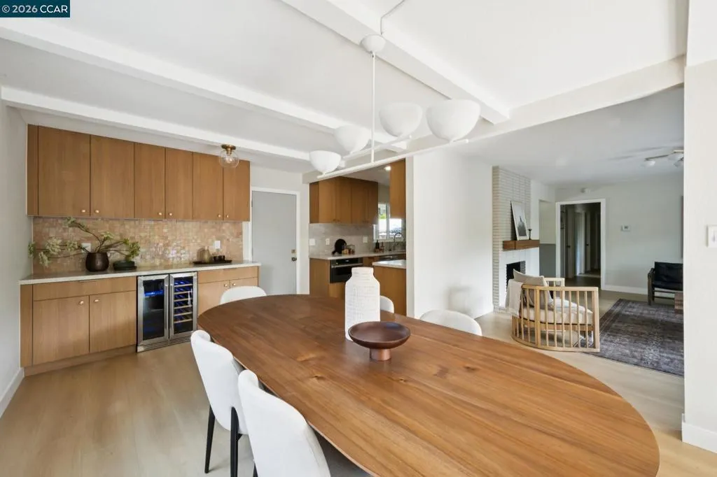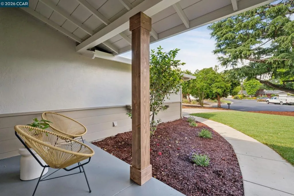 Nestled at the end of a cul de sac surrounded by mature trees sits this beautifully updated 3 bedroom, 2 bath ranch style home on nearly half an acre of flat land. The long driveway is surrounded by lush, new sod & leads to the charming covered porch with stunning wooden door. Enter the light filled home that features new flooring, windows & paint throughout. Old meets new with exposed brick & new countertops, cabinets & appliances. The living room overlooks the expansive backyard & an oversized dining room with wet-bar featuring a built-in wine fridge completes the chic entertaining space. A renovated hall bathroom & two well sized bedrooms lead to the primary suite with walk-in closet & beautiful en-suite bathroom. For those warm East Bay summers, there is a whole house fan along with a newly installed HVAC system. The true gem is the large pie shaped lot with endless possibilities. Close proximity to PH Bart, downtown Pleasant Hill, Walnut Creek & Concord, 457 Nora Court gives you the privacy retreat you crave while being in close proximity to it all.