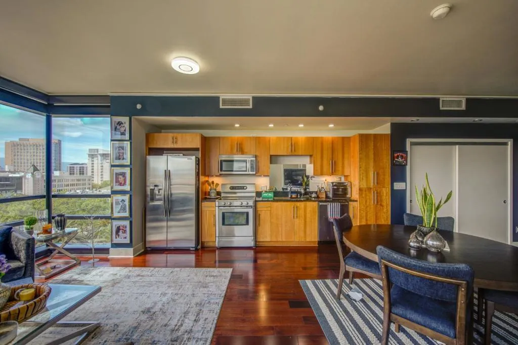 Welcome to "The 88-downtown". Located in San Jose, this 732-square-foot home offers a practical layout featuring one bedroom and one full bathroom. Inside, the living room includes a dining area, and the home is equipped with central air conditioning and forced air heating for year-round comfort. A Luxury studio condo in the very heart of San Jose. Enjoy Luxury Lifestyle with Convenience & Low Maintenance. Beautiful floor to ceiling windows with fantastic views of the City. Amenities include Sun-Drenched, Resort Style Pool, Spa, Indoor Lounge w/Big Screen TV, 2-Sided Fireplace, Gourmet Kitchen, Outdoor Lounge, Rooftop Garden/Patio, Fitness Center and Gardens, Observation Deck, and a Billiards Room. Your buyer will love it, so run, don't walk, show the property now!