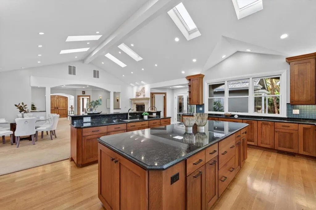 This stunning executive five-bedroom, four-bath residence offers an exceptional blend of space, natural light, and refined functionality. The expansive chefs kitchen serves as the heart of the home, featuring custom white oak cabinetry, a large breakfast bar, and generous workspace, perfect for both everyday living and effortless entertaining. Soaring ceilings and multiple skylights throughout fill the home with abundant natural light, creating an open and airy atmosphere throughout. The spacious primary suite is a true retreat, complete with a spa-like bath featuring a soaking tub, dual-sink vanity, dedicated beauty station, and a separate double shower. Step outside to a beautifully designed tropical backyard oasis, showcasing a tranquil koi pond and multiple lounge and entertaining areas, ideal for hosting gatherings or enjoying peaceful outdoor living. Additional highlights include a two-car garage, ample storage with dedicated sheds, and solar power for enhanced energy efficiency and low monthly utilities. Ideally located near top-rated schools, shopping, commuter routes, and major employment centers, this home offers the perfect balance of luxury, comfort, and convenience. Come see for yourself this home is something special!