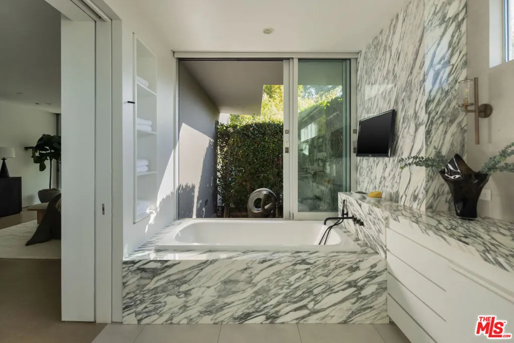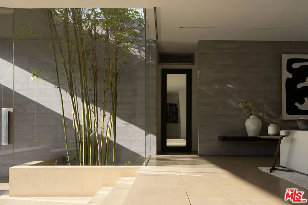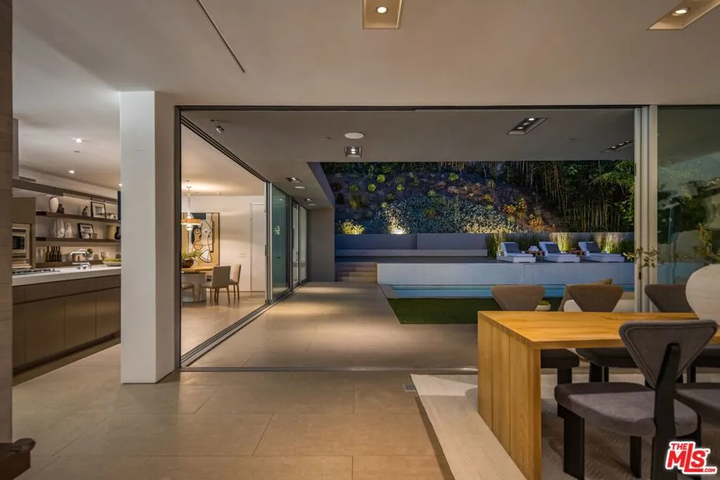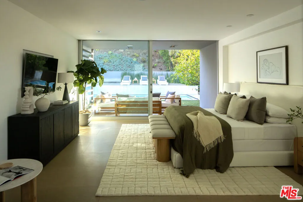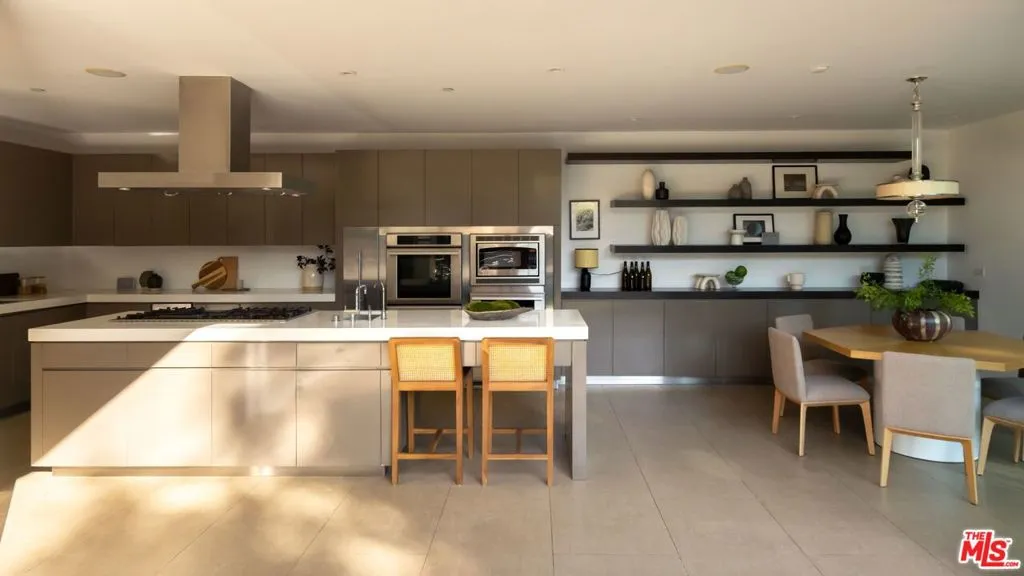 Beyond private gates and an extended motor court, this contemporary architectural by renowned architect Shubin & Donaldson, offers privacy, scale, and seamless indoor-outdoor living just moments from the best of Beverly Hills and Century City. Clean lines, rich wood detailing, and warm interiors are framed by walls of glass that draw natural light deep into the home. The open floorplan is both expansive and intentional, allowing each space to transition naturally into the next. A generously scaled formal living room is anchored by a sunken sitting lounge, while the adjacent dining room flows effortlessly into the kitchen and opens to the outdoors for easy entertaining. The chef-caliber kitchen is centered around an eat-in island and appointed with streamlined cabinetry, professional-grade appliances, and a breakfast nook overlooking the grounds. Just beyond, an office with a full bath offers flexibility as a private studio, guest retreat, or executive workspace. The primary suite opens to a private outdoor lounge deck and features a large walk-in closet with extensive built-ins, along with a marble-clad ensuite bath complete with a dual-sink vanity, soaking tub, and separate shower. Additional guest suites are well-proportioned and thoughtfully positioned for comfort.The backyard is designed for year-round enjoyment, featuring a flat grassy lawn bordered by mature landscaping, multiple lounge areas positioned for sun and shade, a fire pit for evening gatherings, and a dedicated barbecue area. An elevated sundeck overlooks the pool, creating a layered outdoor setting suited for both entertaining and quiet retreat. Combining architectural clarity with a highly functional layout, this residence offers comfort and convenience in one of the city's most desirable neighborhoods, moments from the premier dining, shopping, and cultural destinations of Beverly Hills and Century City.
