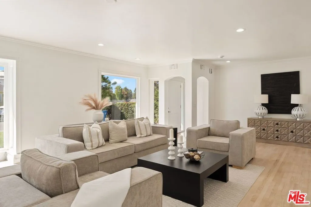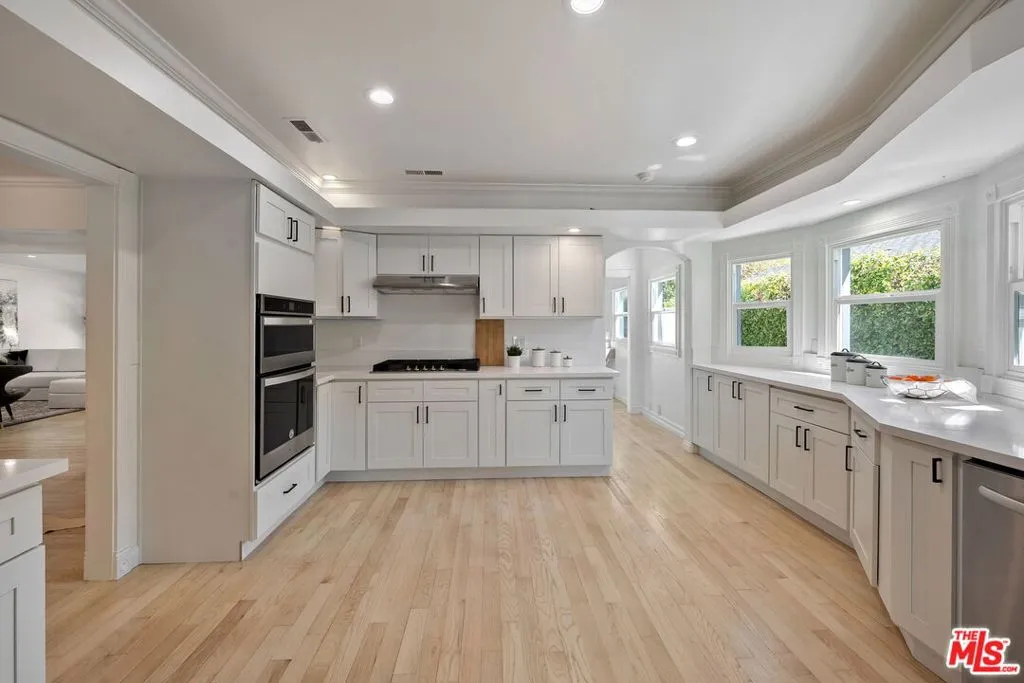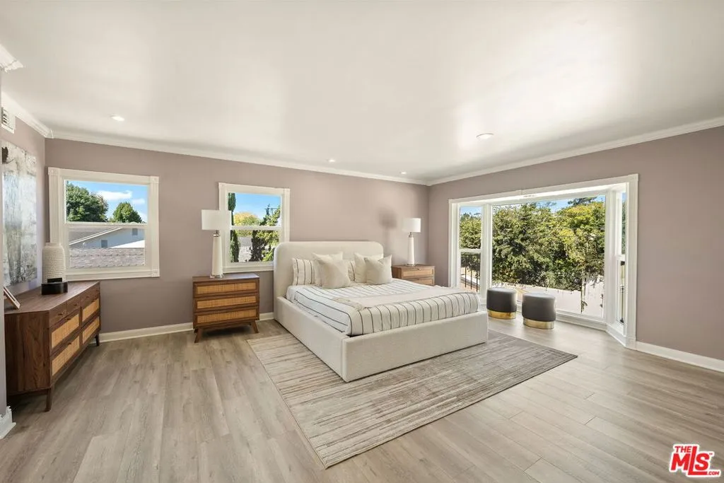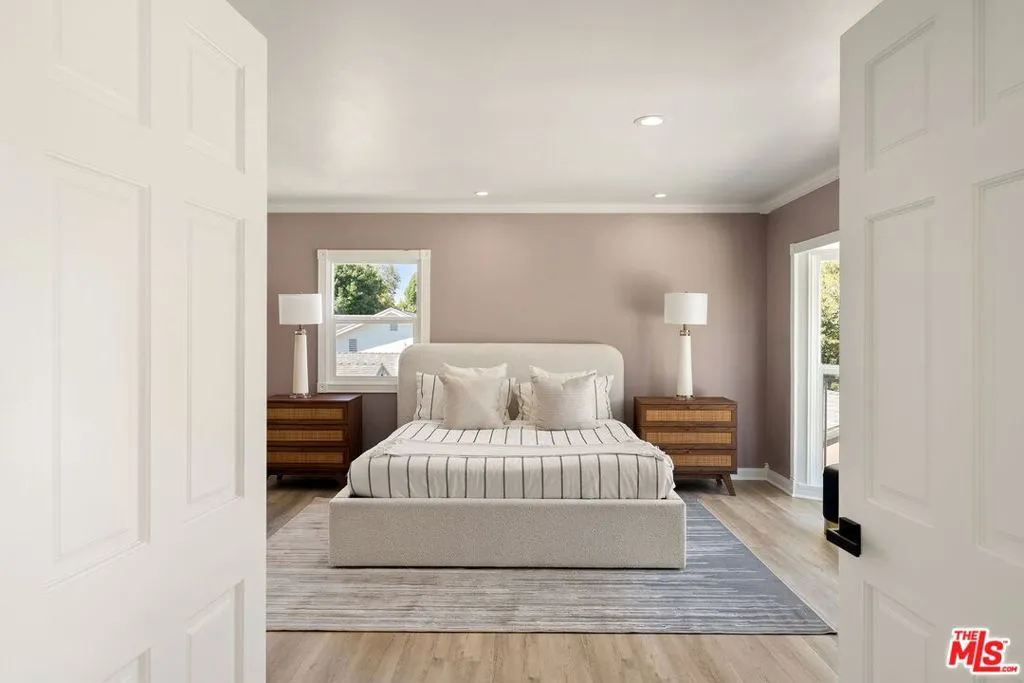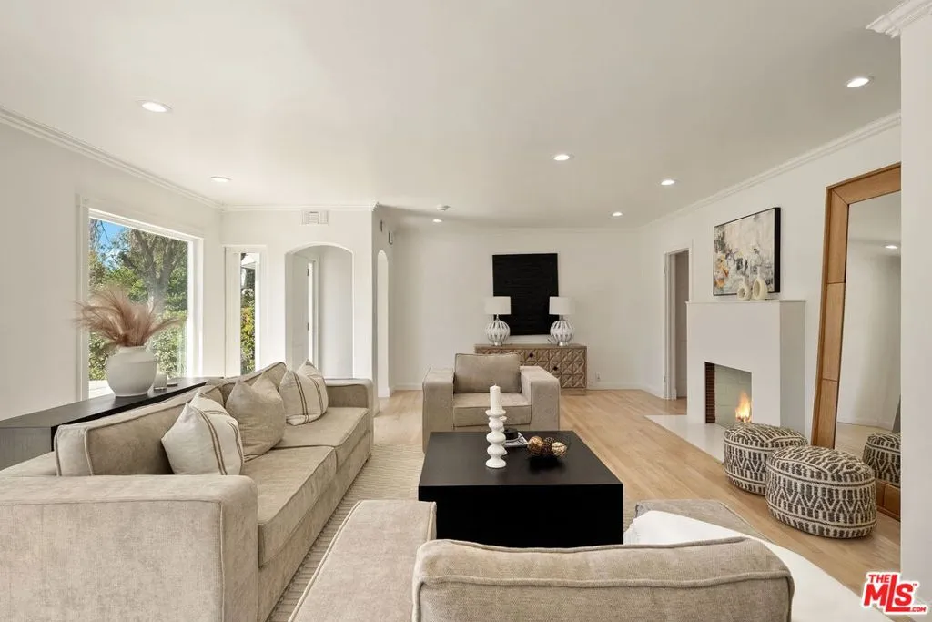Incredible value! Discover this rare opportunity to own a fully remodeled five-bedroom, four-bathroom residence offering over 4,300 square feet of luxurious living space in the heart of Studio City on a peaceful, quiet street.. A half-moon front driveway framed by mature landscaping sets a grand first impression, while gated entry and covered parking provide both privacy and convenience. Inside, high ceilings, expansive bay windows, and beautiful hardwood flooring throughout create a warm and inviting atmosphere that blends timeless charm with modern sophistication. The open-concept floor plan features spacious living and dining areas that flow effortlessly into a stunning chef's kitchen with quartz countertops, custom cabinetry, stainless-steel appliances, and designer fixtures perfect for entertaining or everyday living. Upstairs, the bedrooms are generously sized, including an exceptionally large primary suite with a walk-in closet and a spa-inspired bathroom featuring an oversized vanity, a soaking tub, and a glass-enclosed shower. Each additional bath has been tastefully updated with elegant tilework, designer hardware, and premium finishes. The top floor offers a versatile bonus level charming, light-filled bonus space ideal for a playroom, media lounge, or creative space. Step outside to a resort-style backyard complete with a brand new fence, sparkling pool, spa, and stone patio designed for effortless indoor-outdoor living. The home has a detached two car garage with a long driveway for additional parking. Perfectly situated on a quiet, tree-lined street just moments from Ventura Boulevard, Tujunga Village, top-rated schools, and fine dining, this exceptional Studio City home perfectly combines space, style, and sophistication in one of the Valley's most desirable neighborhoods.